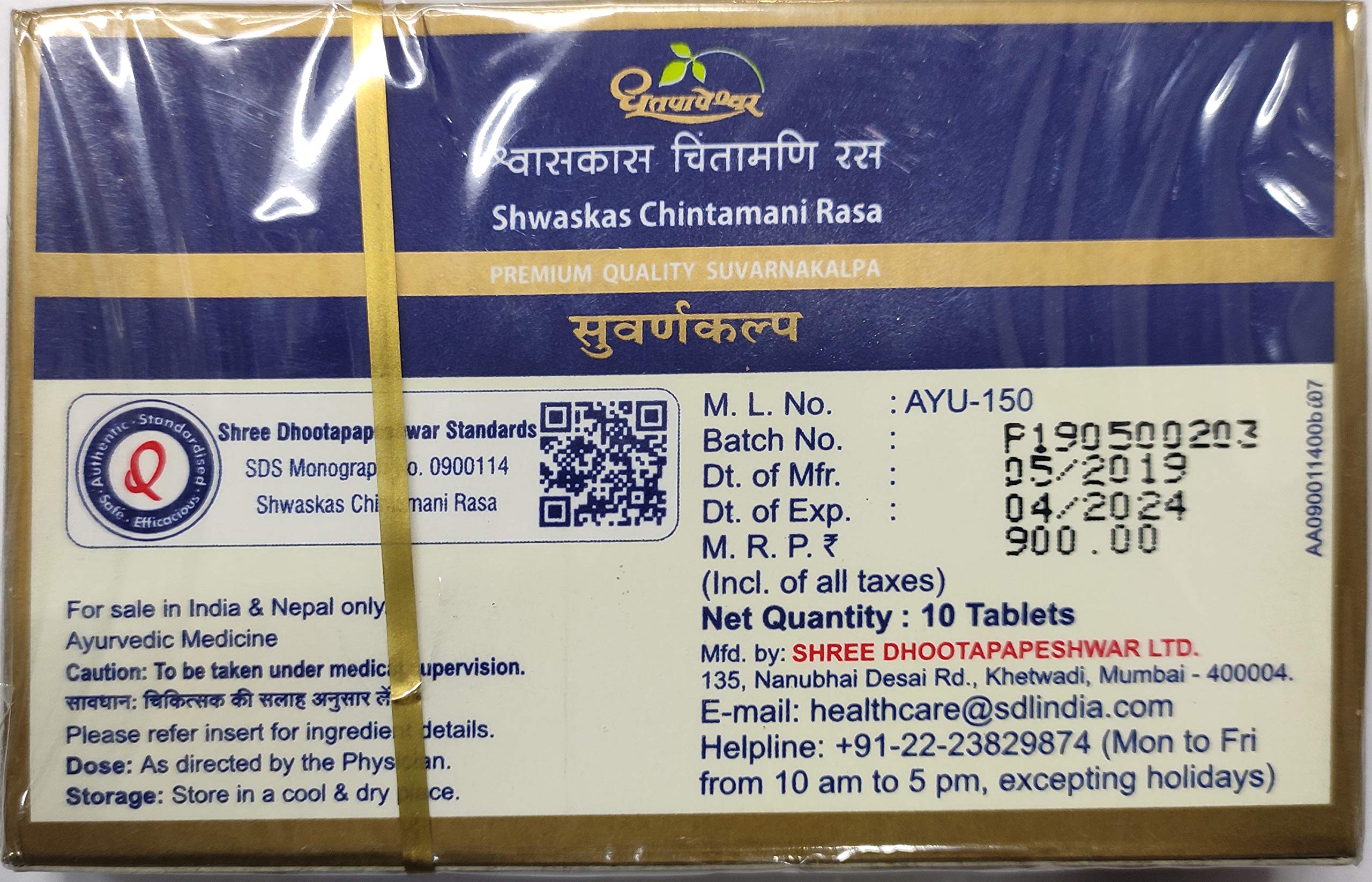 Dhootpapeshwar Shwaskas Chintamani Rasa | 10 Tablets
