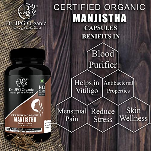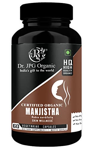 Dr. JPG Organic Manjistha Capsules For Hair & Skin Care 500mg 60 Veg. Capsules/INDIA ORGANIC Certified (Pack Of 1)