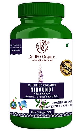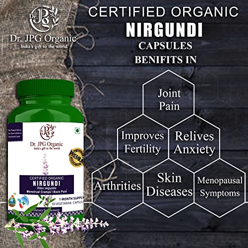 Dr. JPG Organic Nirgundi Capsules For Joint Pain & Back Pain 500mg 120 Veg. Capsules | INDIA ORGANIC Certified.