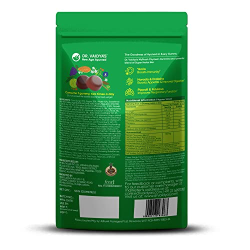 Dr. Vaidya's Chyawan Gummies | Pack of 1 (50 Gummies each) | Goodness of Chyawanprash in a Gummy | Enriched with 40 super herbs | Safe and natural ingredients