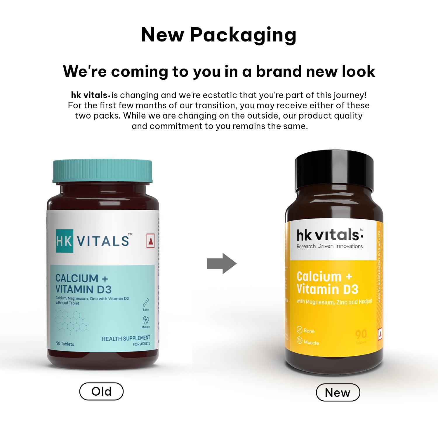 HealthKart HK Vitals Calcium + Vitamin D3 Supplement For Women & Men (90 Tablets) | With Magnesium & Zinc | For Complete Bone Health & Joint Support