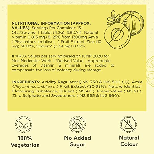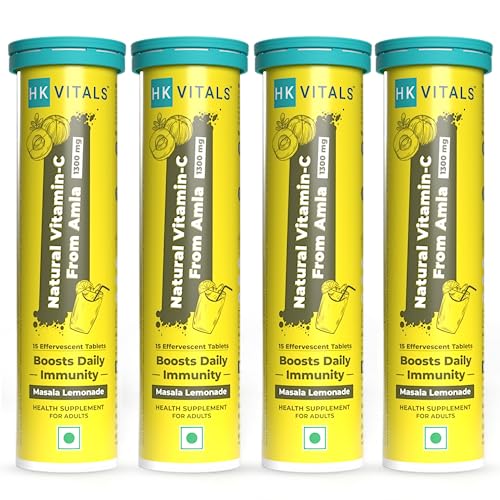 HealthKart HK Vitals Natural Vitamin C 1300 mg from Amla & Zinc for Adults Enhances Skin Radiance No added Sugar (Masala Lemonade 60 Effervescent Tabs.)