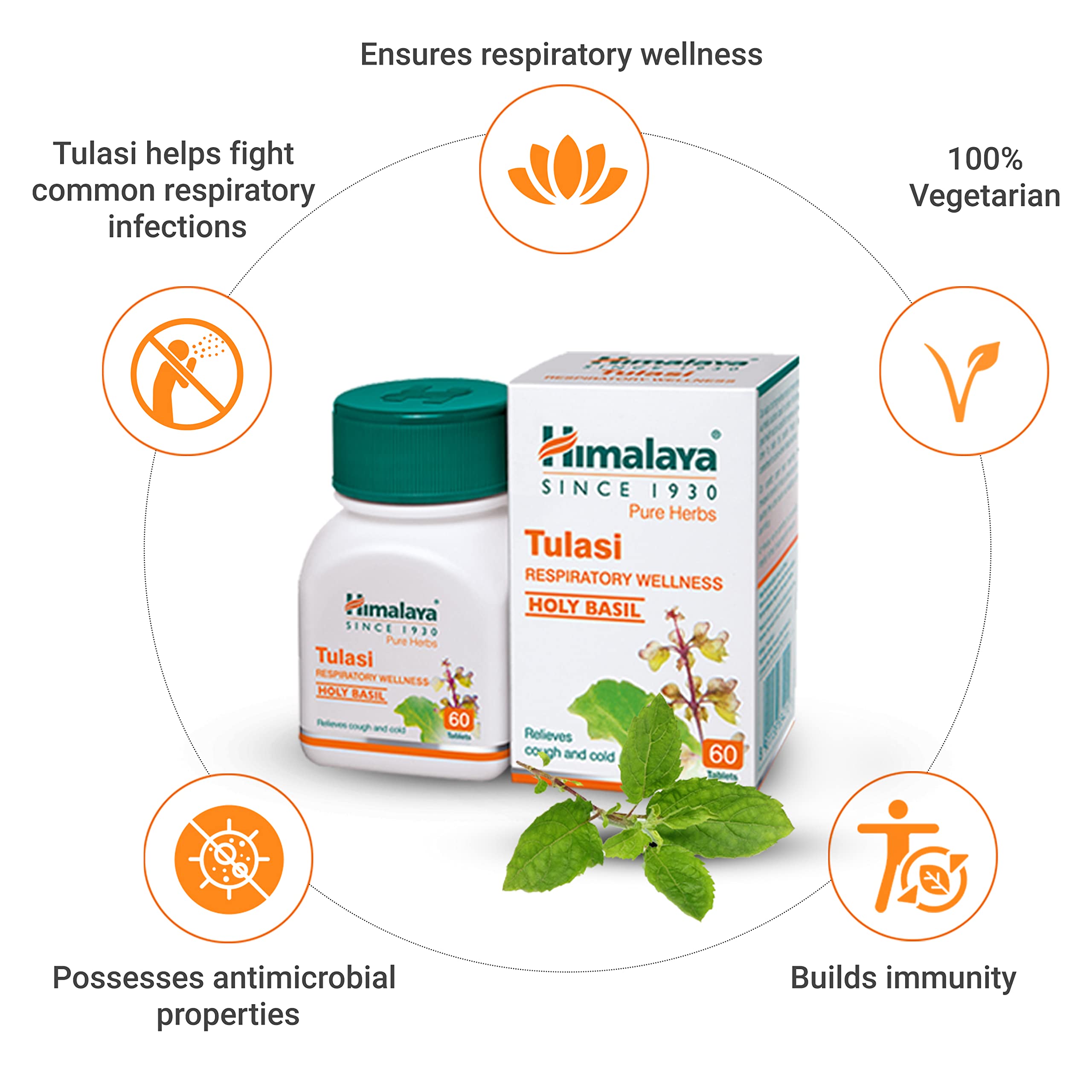 Himalaya Wellness Pure Herbs Tulasi Respiratory Wellness | Holy Basil |Relieves cough and cold| -Pack of 60 Tablets