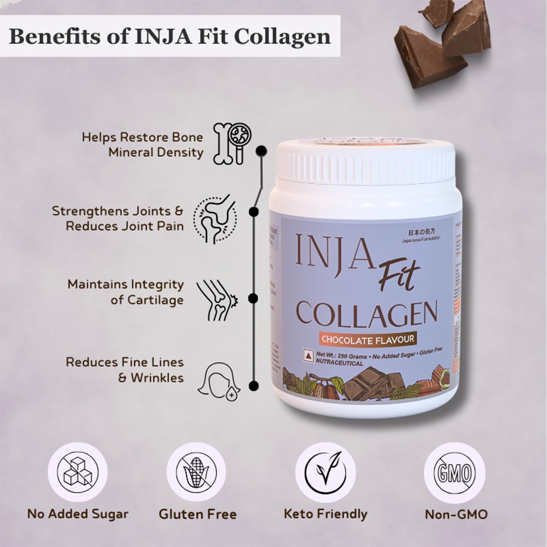 HomeHealth & PersonalDiet & NutritionHealth SupplementsINJA Wellness Fit Marine Collagen Supplement for Women Men Collagen Powder with Vitamin C Japanese Formulation Healthy Joints Muscles Skin & Hair Sugar and Gluten Free Chocolate Flavor 250 gm