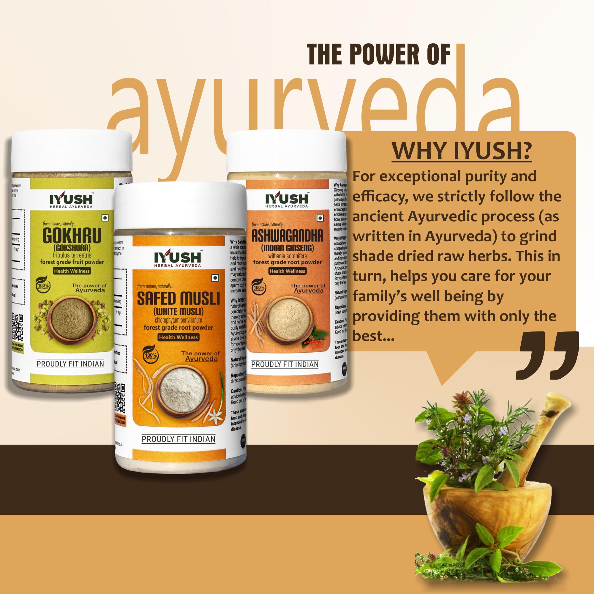 IYUSH Herbal Ayurveda Gokshura Ashwagandha Safed Musli powder (Pack of 3) - 100gm