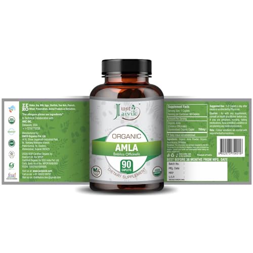 Just Jaivik Organic Amla Tablets - A Dietary Supplements - 750 mg (Pack 90 Organic Tablets) | for Boosts Digestion and Immunity Wellness
