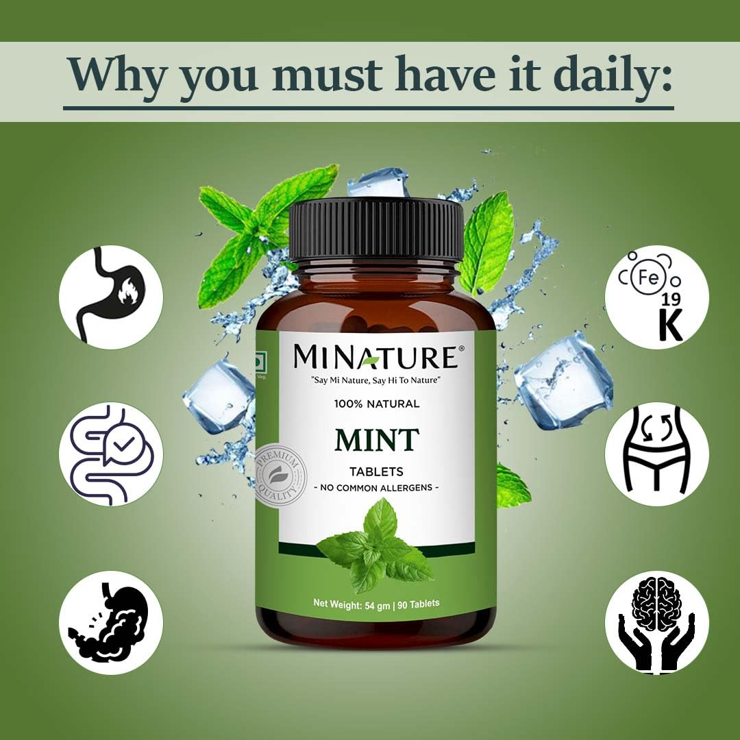 Embark on a refreshing journey with Mi Nature's Mint Tablets a burst of coolness in every dose! âï¸Crafted with the pure essence of Mentha our Mint Tablets are a natural sensation for your senses. Pure and Natural Mentha Extracts: MINT Tablet is made from genuine Mentha extracts delivering the full spectrum of benefits associated with this aromatic herb. The natural essence of Mentha contributes to the overall quality and authenticity of the product. The MINT Tablet by Mi Nature is designed to harness the natural benefits of Mentha (mint). Each tablet is formulated with pure and natural mint extract ensuring a high-quality and potent product. What sets this tablet apart is its commitment to being free from chemicals and preservatives providing a clean and wholesome supplement experience. Refresh your senses and make every day a minty-fresh adventure with Mi Nature's MINT Tablet! ð