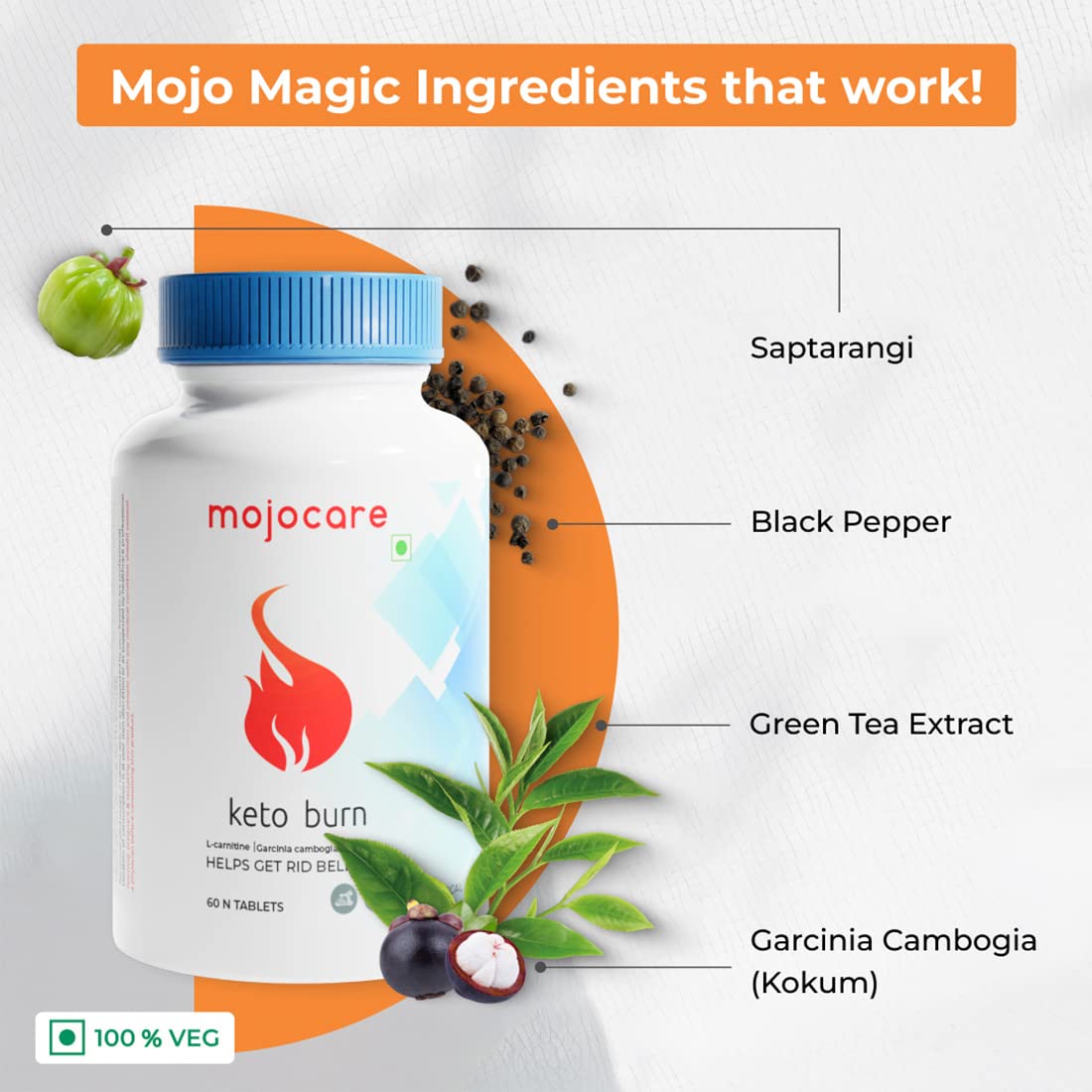 Mojocare Keto Burn Tablets with Green Tea Extract Green Coffee & Black Pepper For Men & Women | Burn Fat & Lose Weight | Reduce Belly Fat & Cholesterol | 60 Veg Tablets