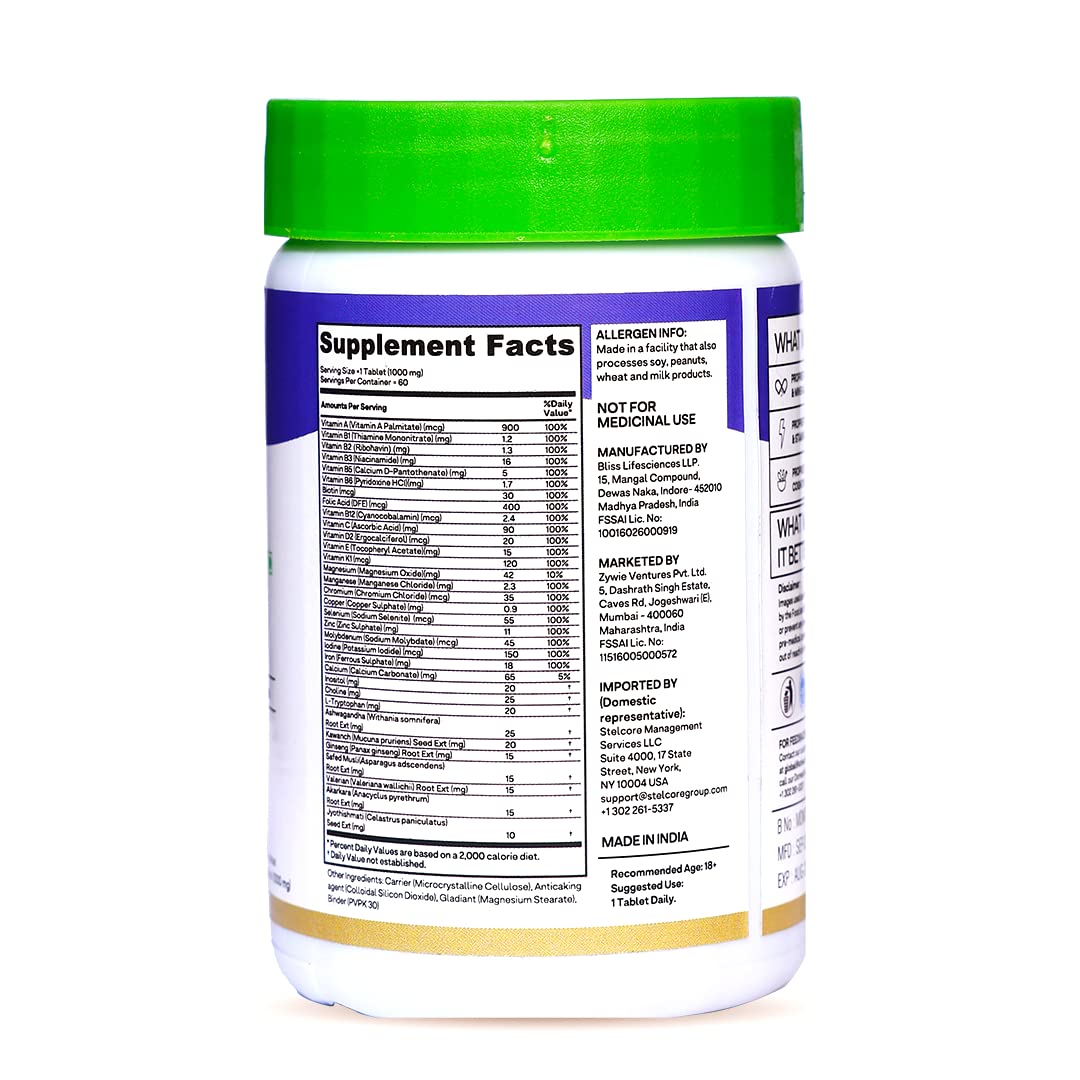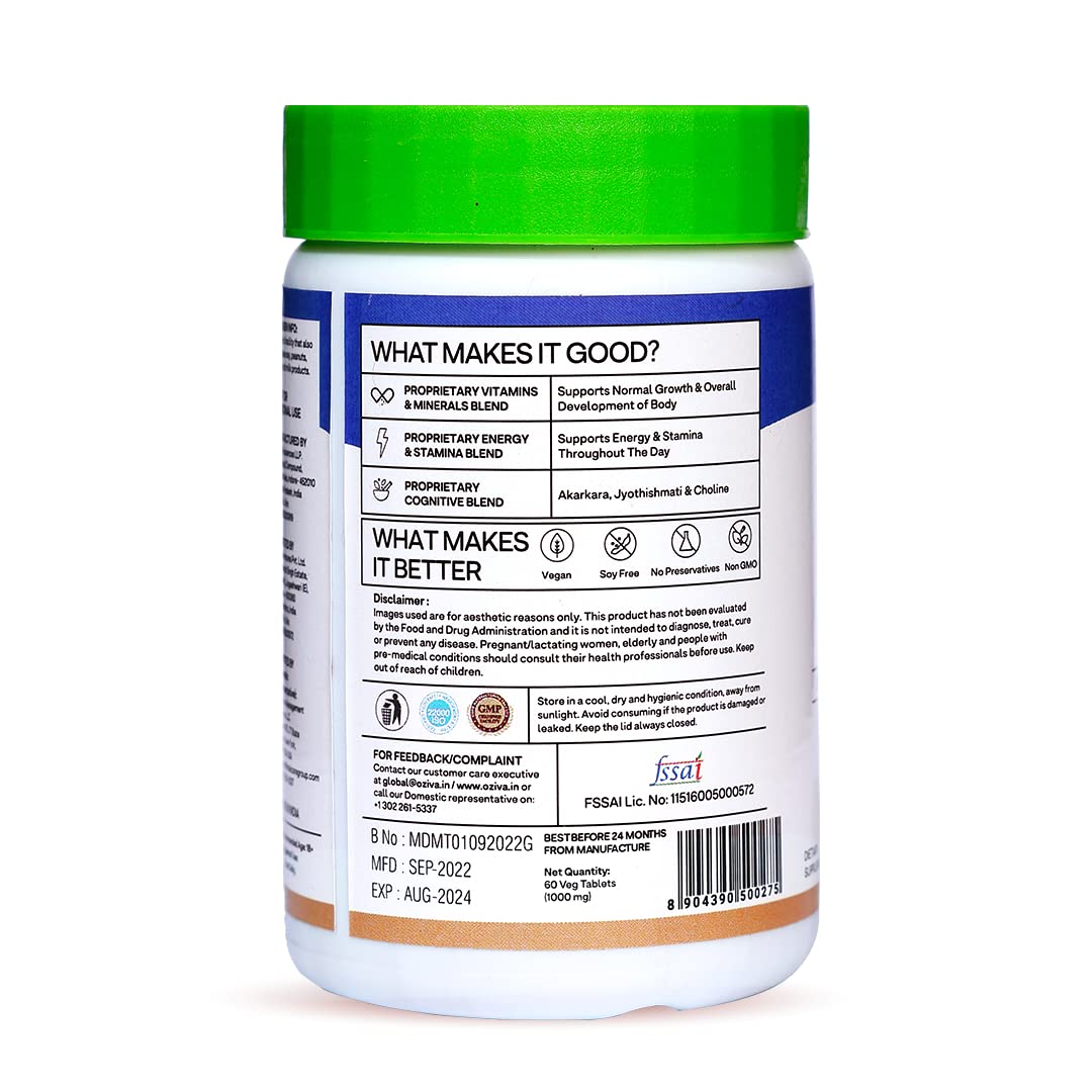 OZiva Natural Multivitamin for Men with Ashwagandha Akarkara & Choline for Daily Stamina Strength & Energy 60 Vegetarian Tablets