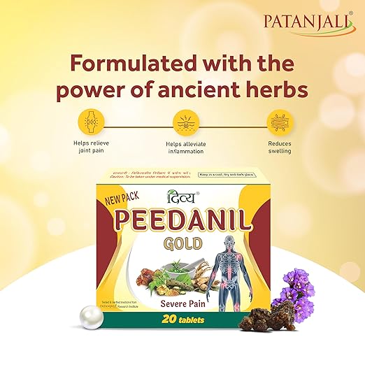 Patanjali Divya Peedanil Gold Tablet is known for its analgesic properties. Knee pain is primarily caused by cartilage damage, and this advanced treatment modality may help repair or restore damaged cartilage, thereby relieving joint pain. Patanjali Divya Peedanil Gold Tablet is known for its ability to treat pain, inflammation, and sprains, among other conditions. Its natural components are thought to have the ability to repair or restore damaged cartilage, thereby alleviating joint pain.