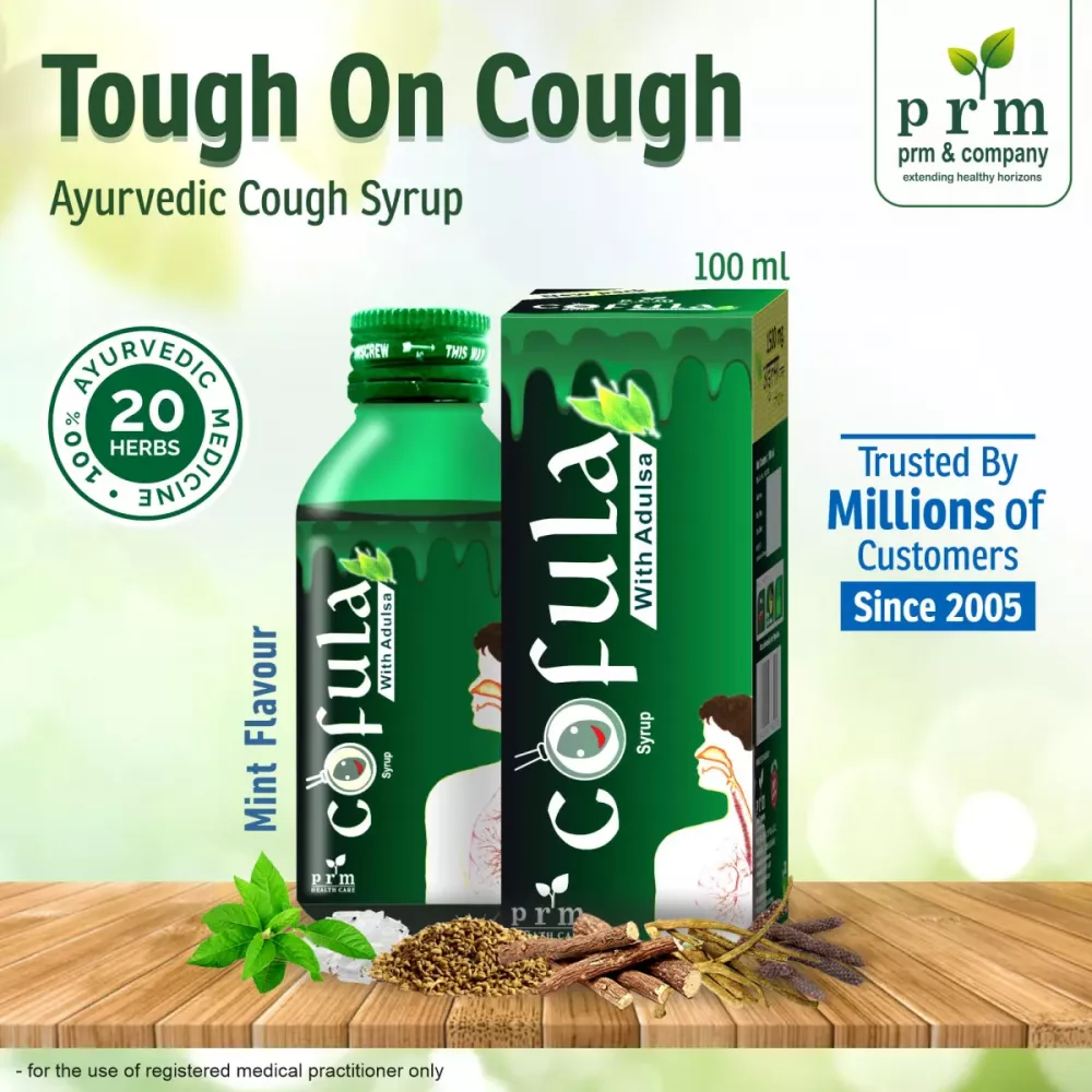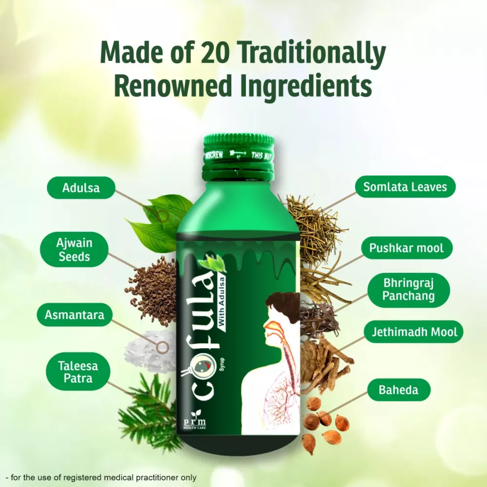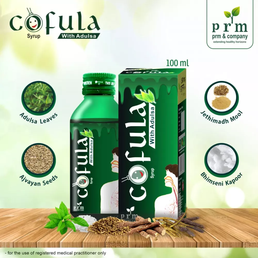 PRM Cofula Ayurvedic Syrup 110ml (Pack of 2) Effective Relief from Cough & Cold with Adulsa, Jethimadh & Bhimsenkapoor