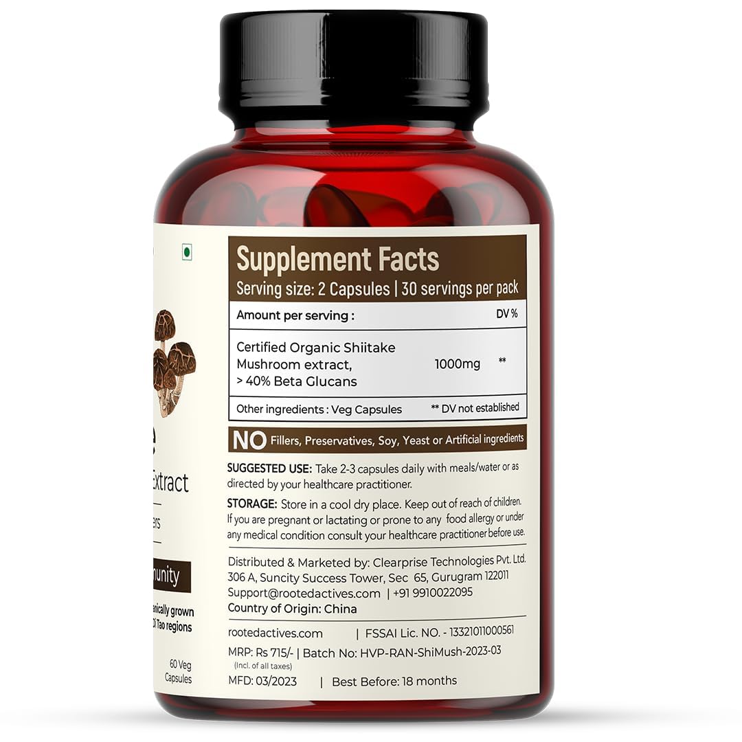 Promote heart health immune function and overall vitality with Rooted Active Naturals Shiitake Capsules and 7 Complex Gummiesa potent blend of organic mushroom extracts for daily wellness. Shiitake Capsules (60 Caps) 100% fruiting body extract rich in beta-glucans designed to support cholesterol levels cardiovascular health and immune balance. 7 Complex Gummies (60 Gummies) A sugar-free guava-flavored blend of seven powerful mushrooms: Lion Mane Cordyceps Turkey Tail Reishi Chaga Shiitake and Tremella for complete wellness.