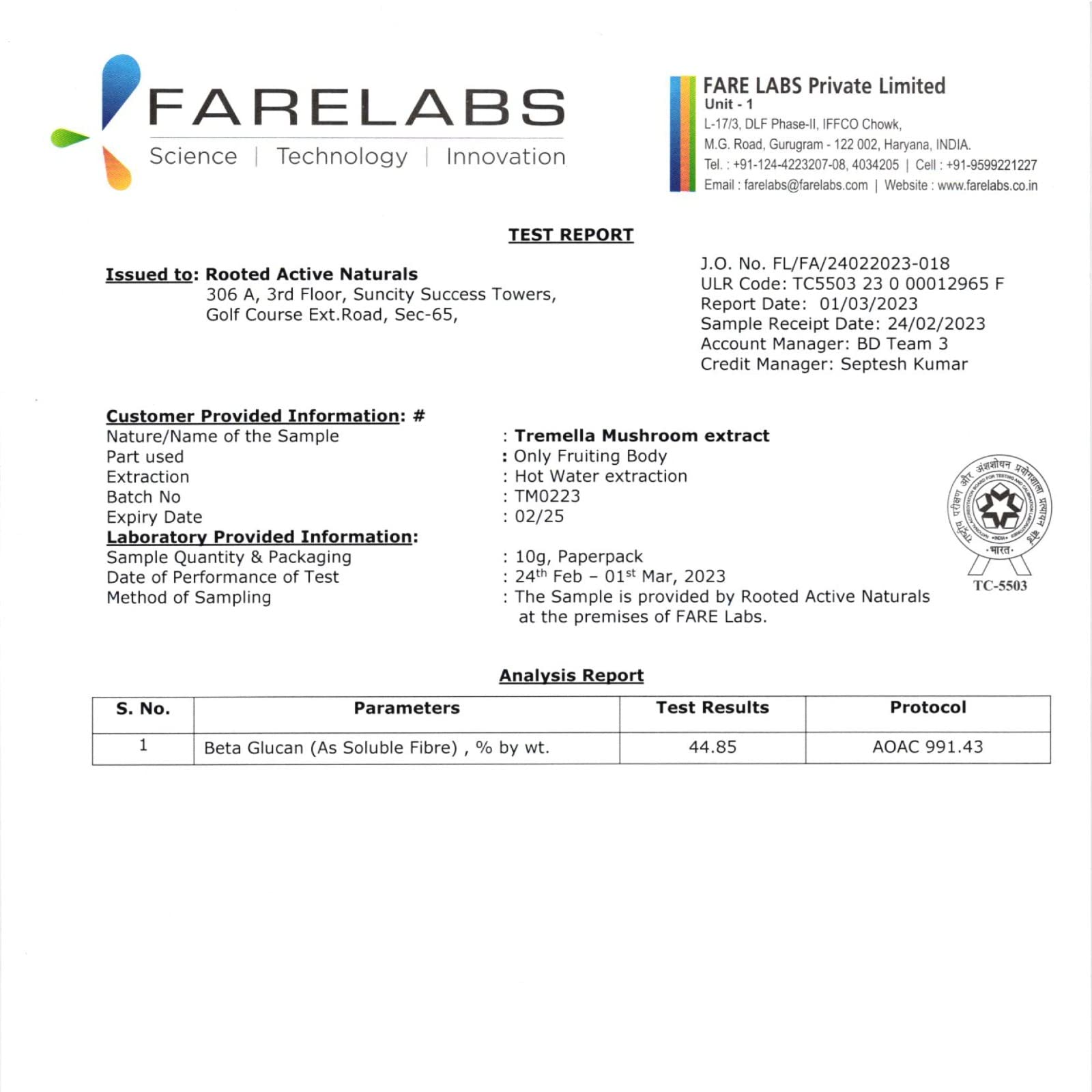 Rooted Actives Tremella Mushroom Extract (45 g) |Beauty Skin Glow Collagen booster Hyalyronic acid Hydration| USDA Organic 45% Beta Glucans