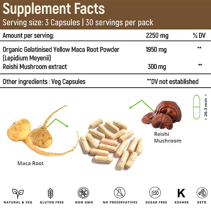Rooted Actives Maca Root Powder With Reishi Mushroom Extract (90 Veg Caps 750 Mg) | Stamina Virility Hormonal Support (Maca Root With Reishi Mushroom)