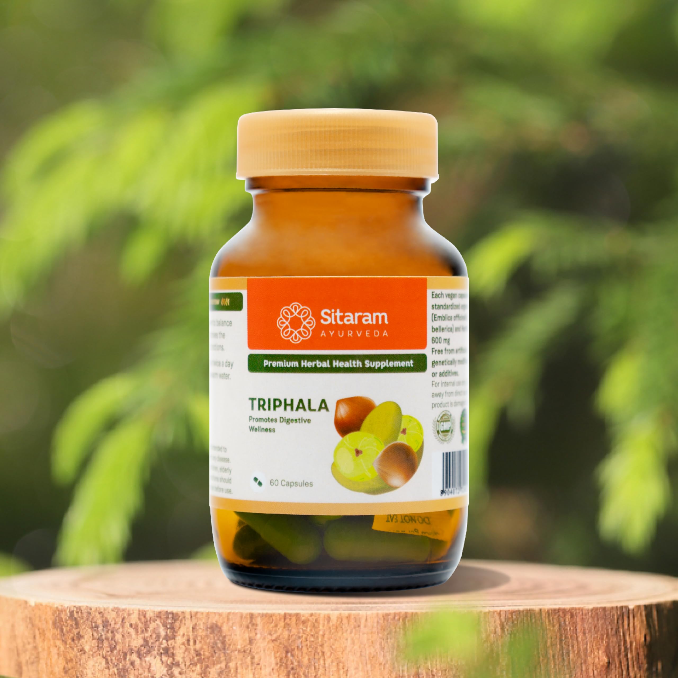 Sitaram Ayurveda Triphala Capsules 60 Nos | More Potent 600 MG Extract (other brands - 250 MG) | Triphala Capsules For Healthy Eyes | Keeps Away Greys & Wrinkles | Bowel Wellness | Improves Digestion.