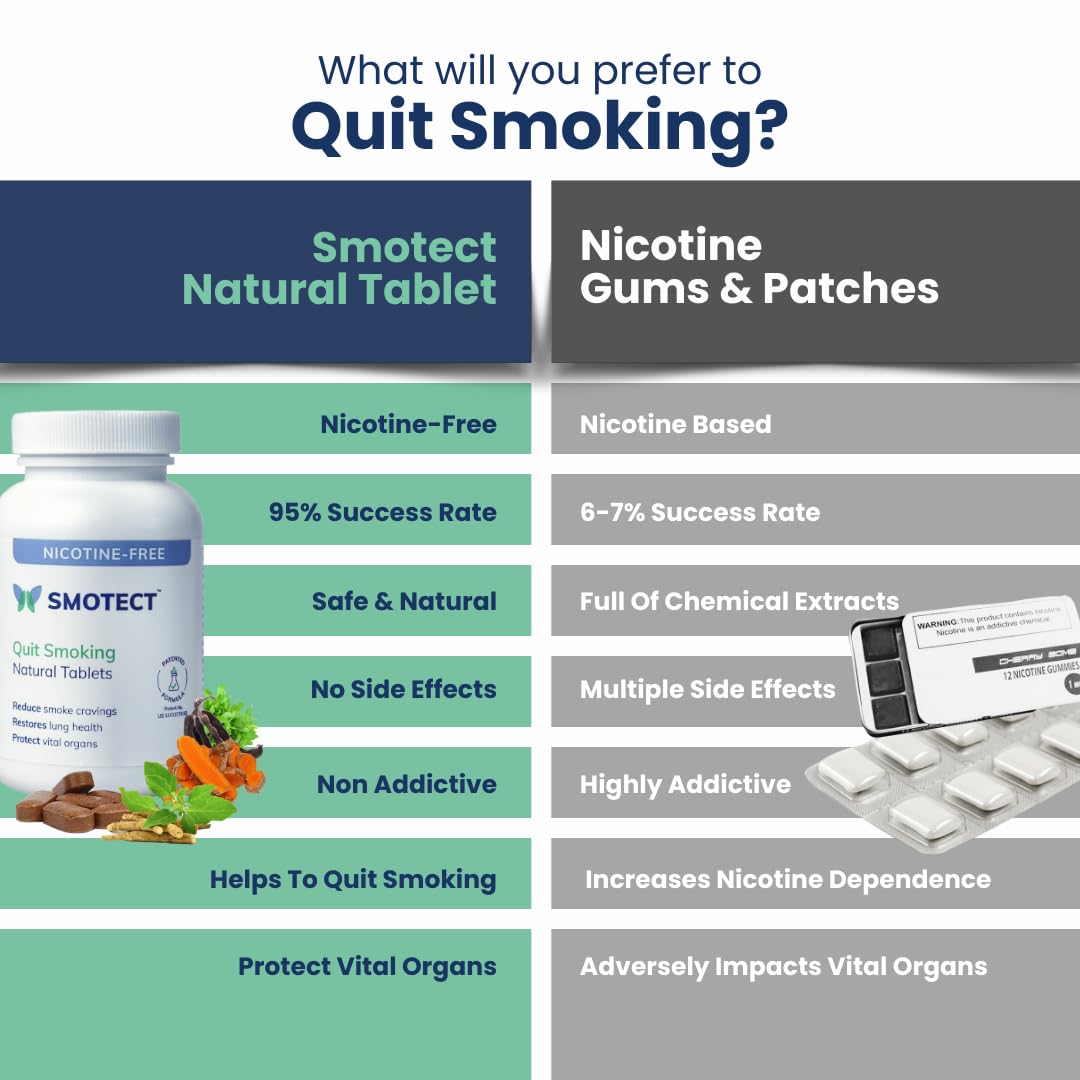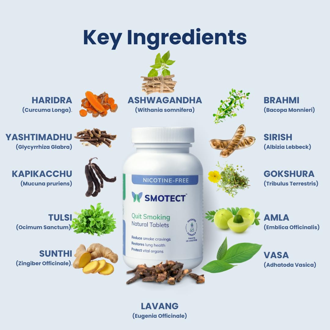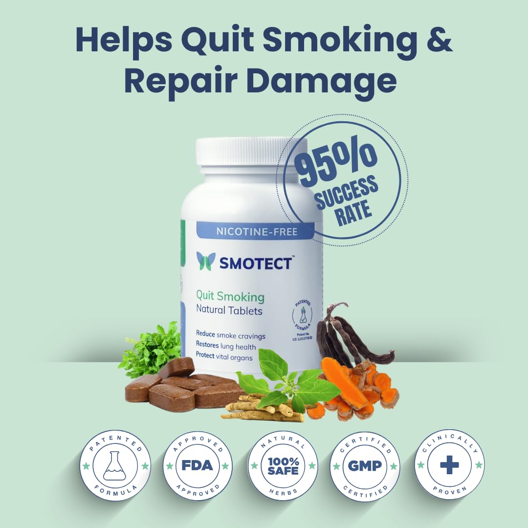 Smotect Natural Tablets for Quit Smoking. Scientifically proven Smotect Natural Tablets are a unique formulation of 12 therapeutic herbs. It prepares your body & mind to quit smoking by reducing your desire to smoke.