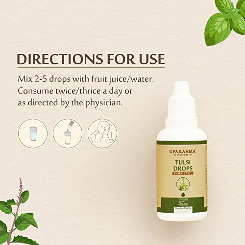 UPAKARMA Ayurveda 5 Types of Holy Basil/Tulsi Leafs Extract Vegan Ayurvedic Herb Supplement Drops | Non-GMO, Gluten-Free Supports Natural Immunity Booster and Supports Stress Relief - 30ml/ 1 fl.Oz