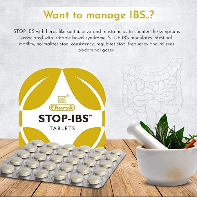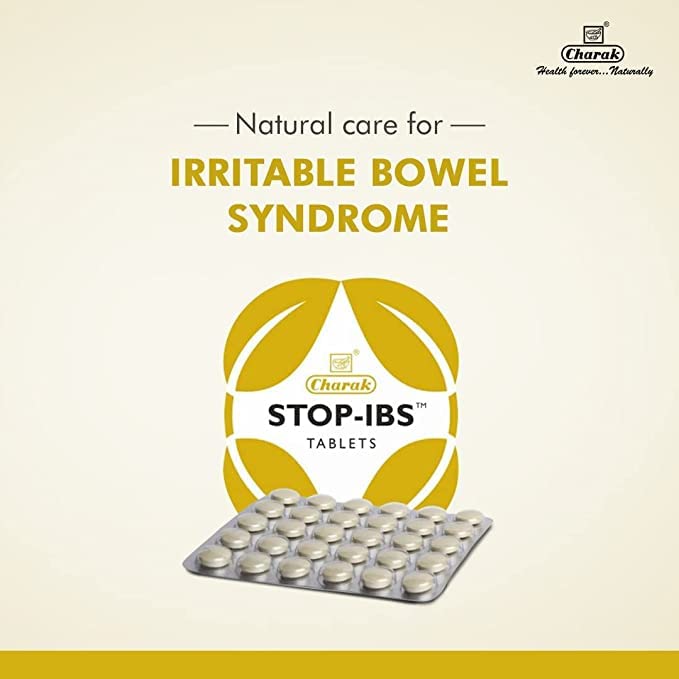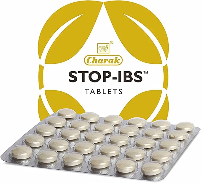 Charak Pharma Stop-IBS Tab. for relief in irritable bowel syndrome and relieves abdominal gases. Contains healing herbs like Sunthi Bilva and Musta (30 Tabs.)