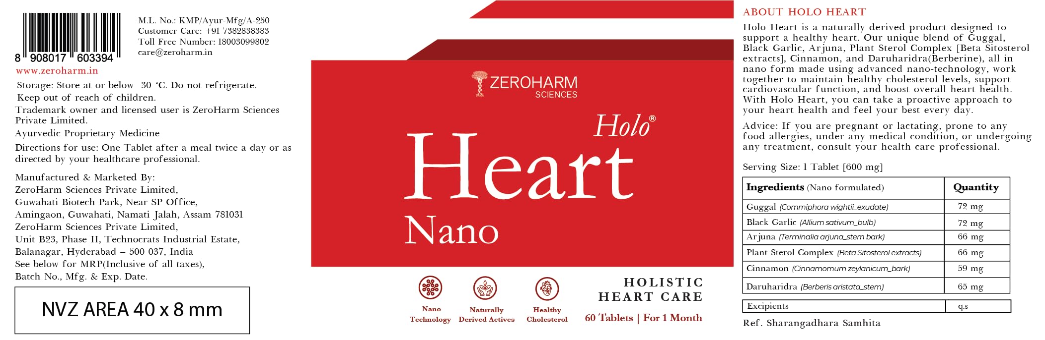 ZEROHARM Holo Heart tablets|Plant-based|Men & women Heart health supplements|Prevents coronary artery disease|Manages lipid profile|Prevents blockages - 1 count 60 capsules
