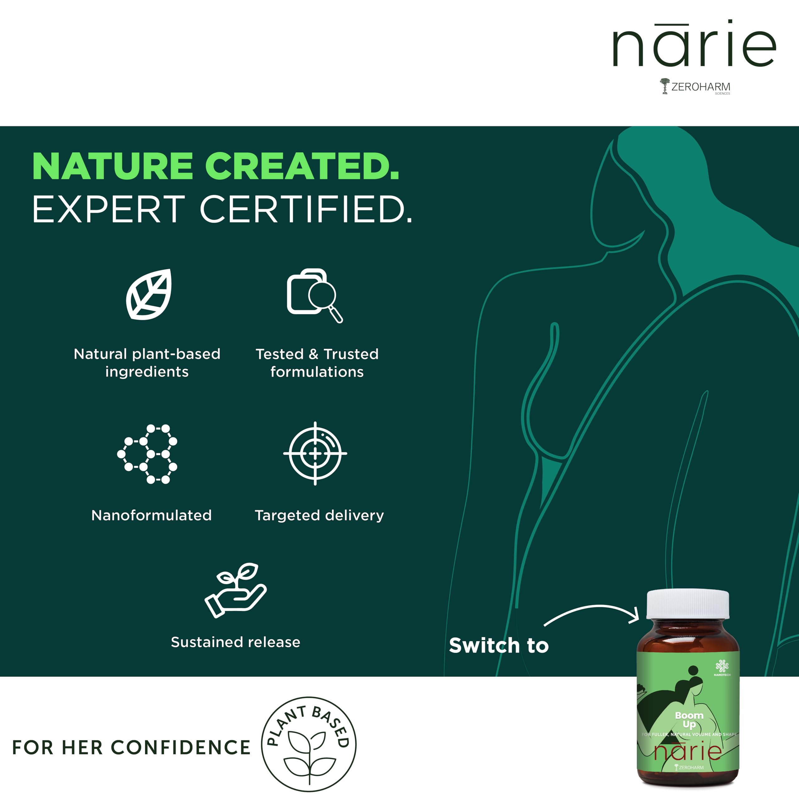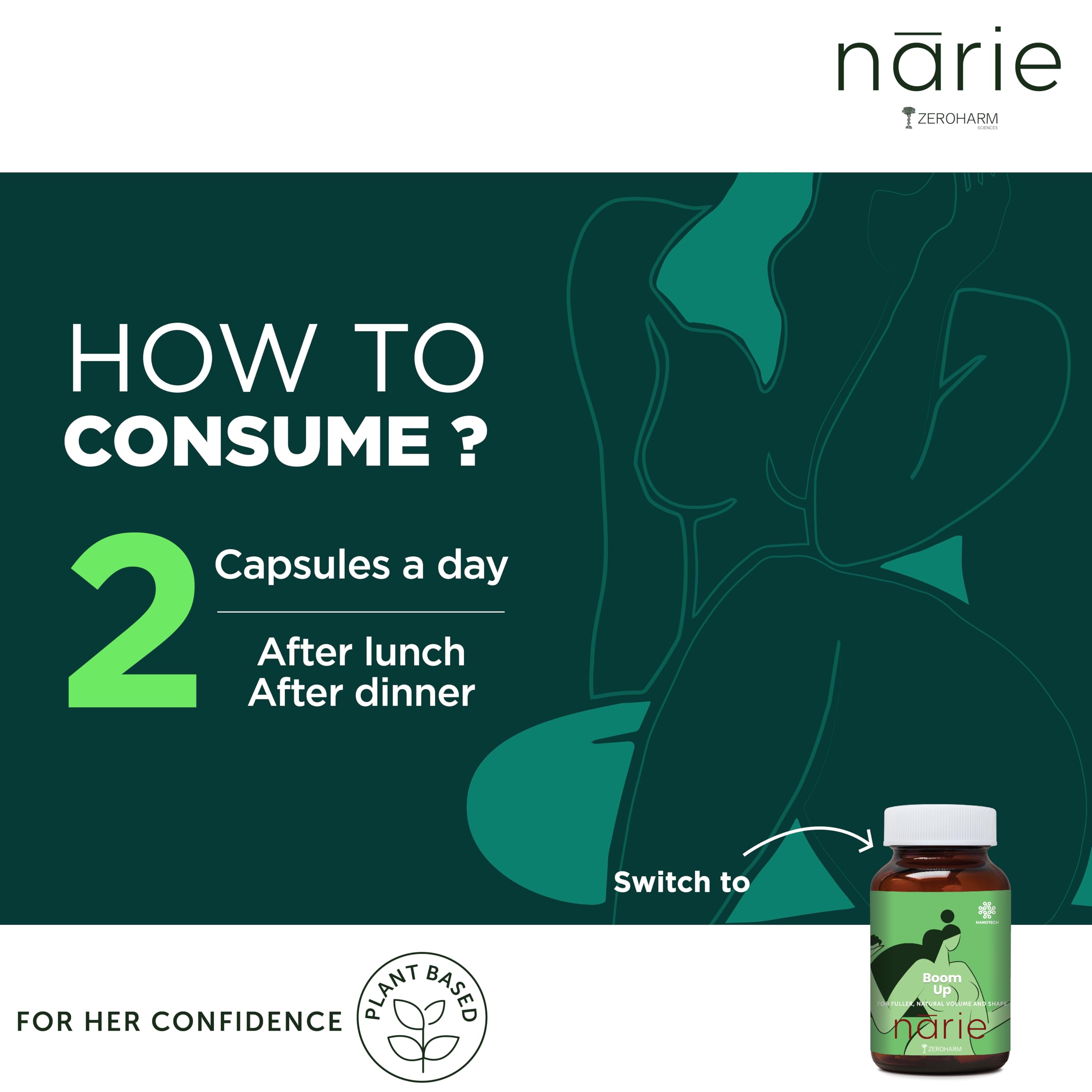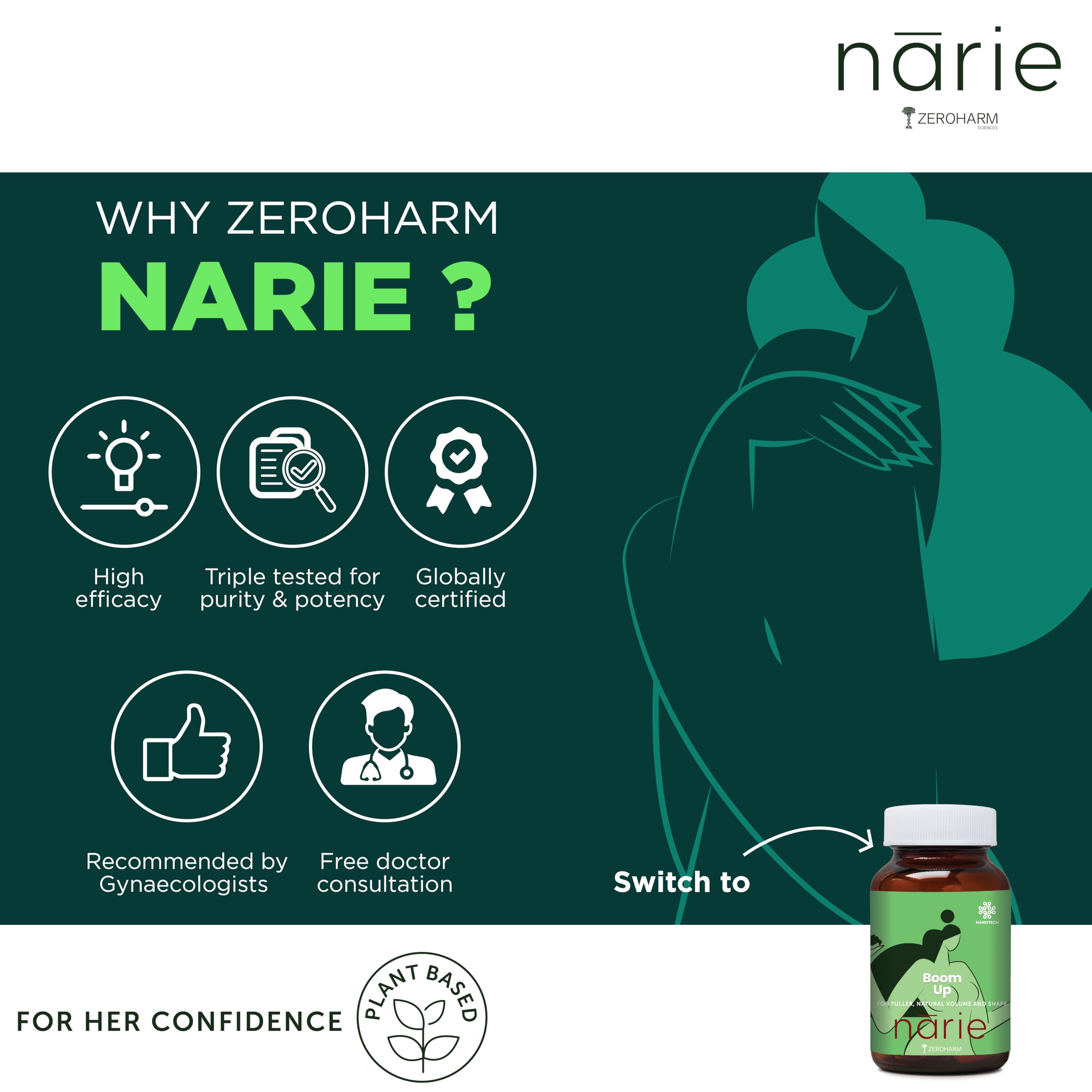 ZEROHARM Narie Boomup Capsules For Women| 60 Caps With Shatavari Fenugreek & 4 More Ingredients To Support B-Care | Feel Healthy & Fuller Volume |Embrace Your Natural Beauty With This Powerful Blend