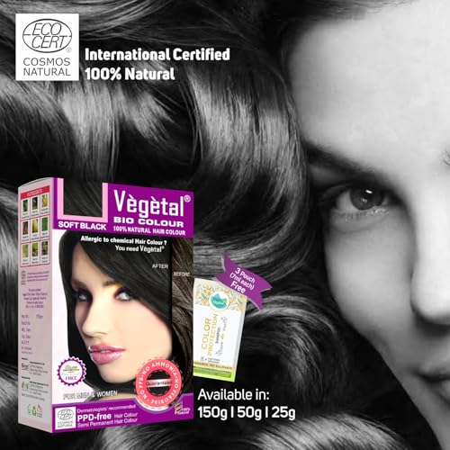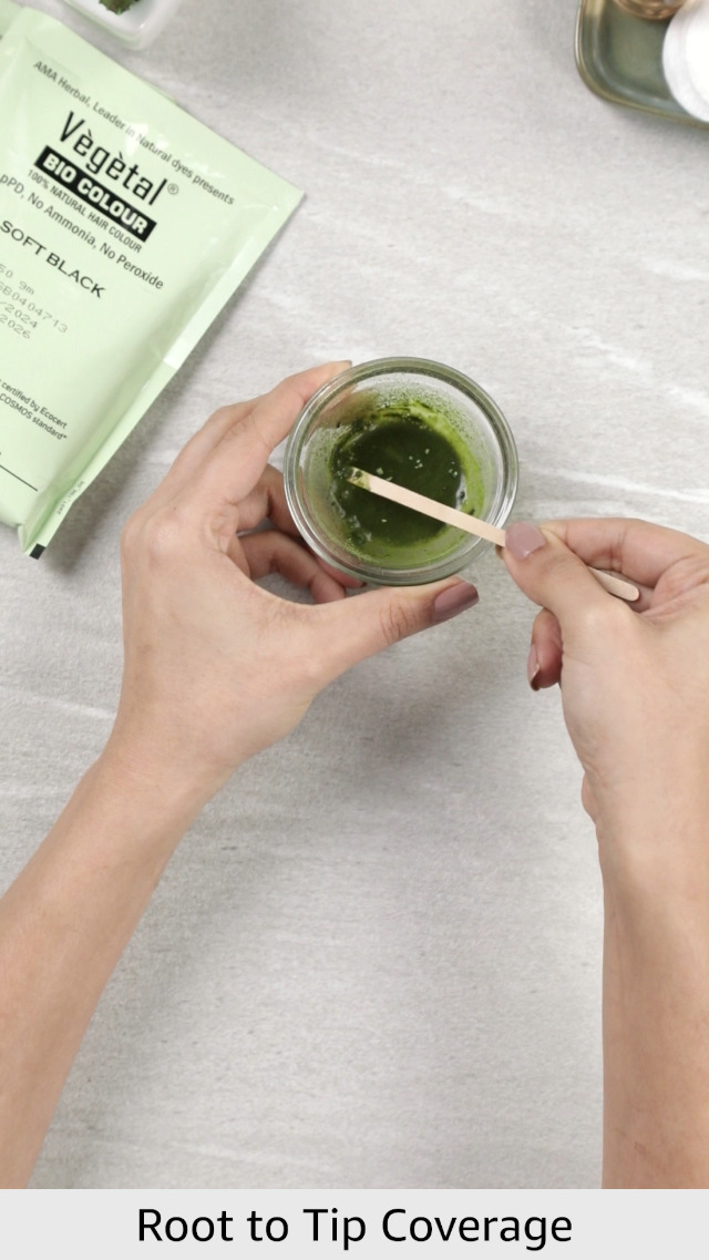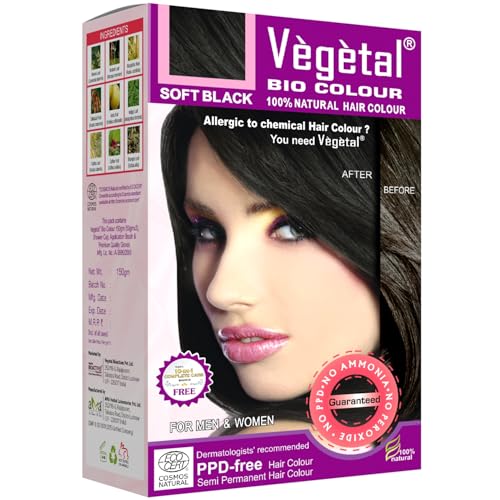 Regain the shiny luster of your hair that was lost due to ppd in your hair color with ppd free vegetal bio color. How to apply use the gloves given inside the pack to apply vegetal bio color from the root to the tip of your hair with the help of a comb and brush. This semi-permanent hair color can be used even if your hair is colored with henna/chemical dyes.