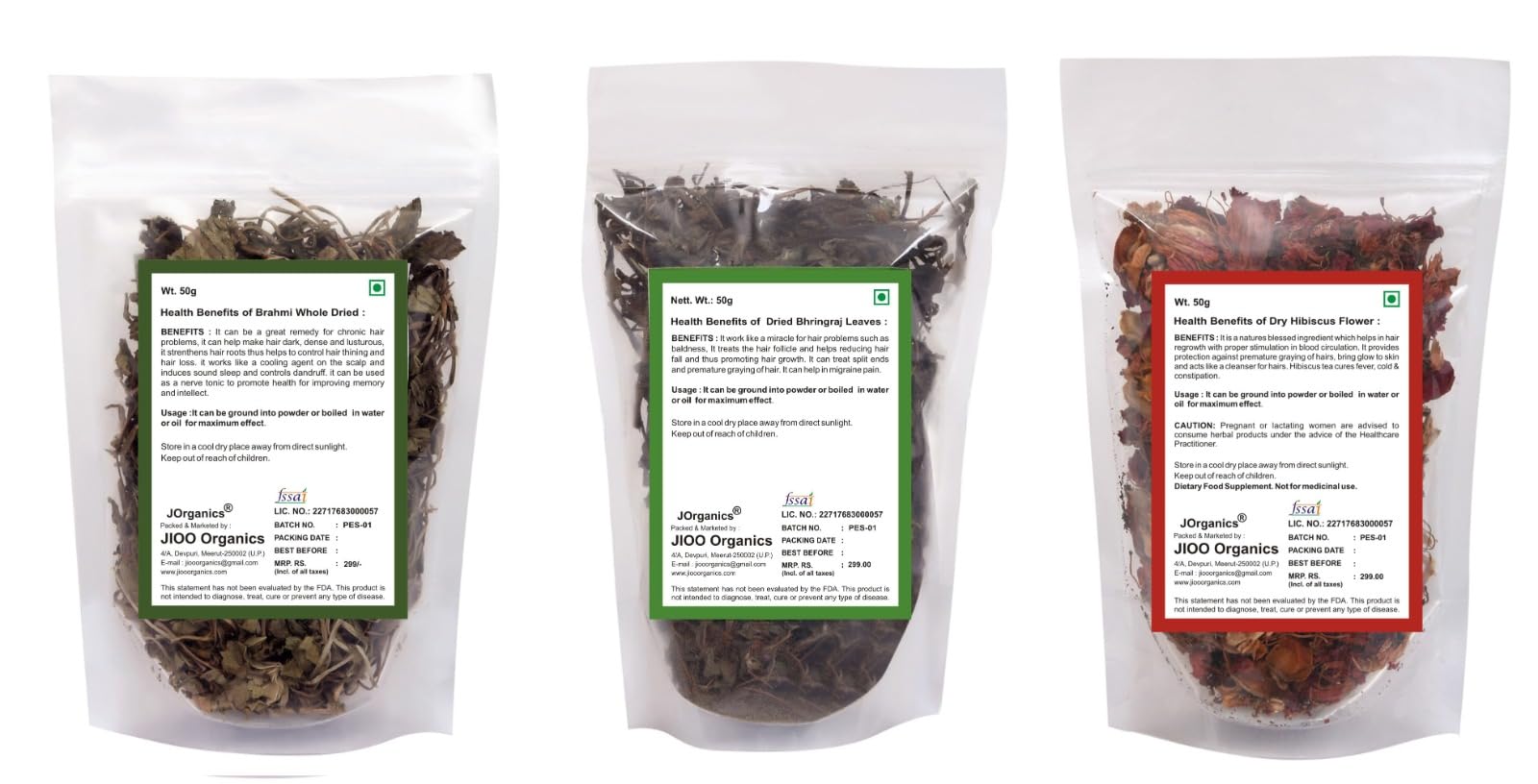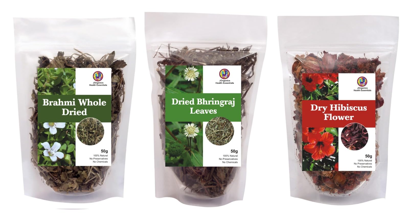 JOrganics Hair Care Combo Of Bhringraj Dry Leaves Dry Brahmi Leaves Dry Hibiscus Flower Pack Of 3 150Grams