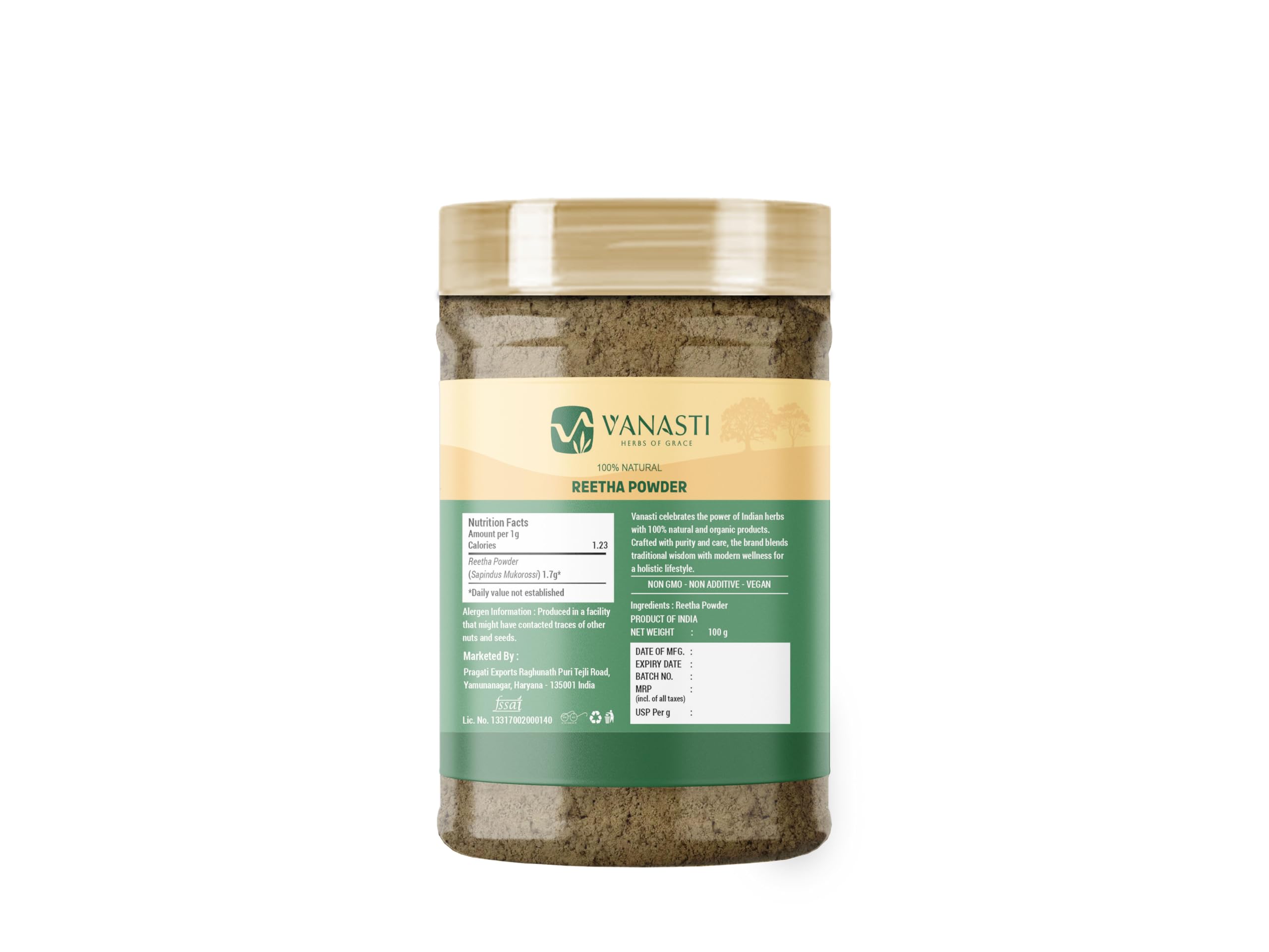 Reetha Powder is made from the dried fruit of the Sapindus mukorossi tree, also known as Ritha or Soapnut. This tree grows in regions from temperate to tropical climates. The powder is valued for its saponin content, a plant-based compound responsible for its natural cleansing properties. Reetha Powder is widely used in shampoos, detergents, and as a gentle cleaning agent.