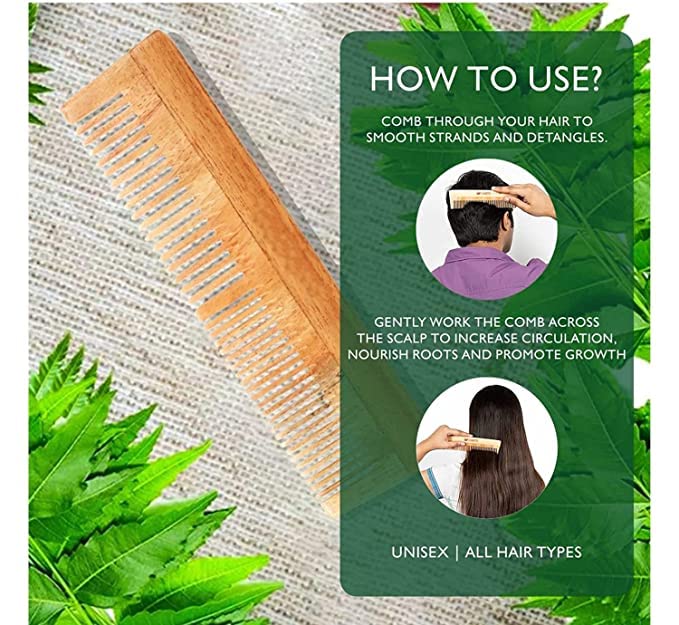 Aravi Organic aims to solve common skincare and personal care concerns with their range of natural products. Discover the benefits of plant derived actives and give your skin and hair gentle care using pure and unadulterated herbal powders and essential oils. Aravi Organic 100% Pure Pressed Almond Oil is a pure natural and organic oil that hydrates and smoothes skin from head to toe and nourishes hair from root to tips. A light and gentle conditioning with the delicate sweet smell obtained from the ripe seeds of the sweet almond tree. Rich in vitamins A and E it nourishes and revives the natural glow. Smoothes hair cuticles helps control hair fall and lustre to damaged hair. Ideal for massages. Sweet almond oil is a natural source of vitamins and nutrients that help keep skin healthy and protect it from environmental toxins that can damage the skin as well as the hair. It is rich in various mineral that soothe skin irritation protect the skin from UV radiation damage and restore the skin's moisture barrier. Aravi Organic Neem Wood Comb is a handmade comb specially designed to detangle hair without causing harm to the hair strands. It is made of natural neem wood to provide endless benefits to both your hair and scalp. This handmade comb is a specially carved efficient comb that everyone should keep on their vanity. The wooden teeth of this comb improve circulation in your scalp and stimulate hair follicles. This comb's non-plastic material makes it safe for the scalp in case of itching or irritation.