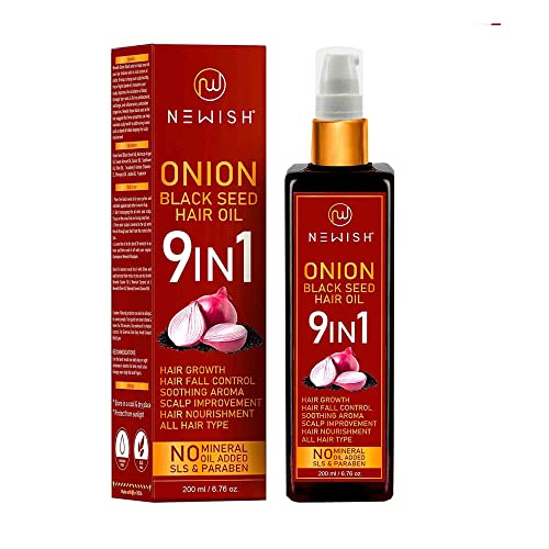 Newish: Our onion hair oil gives your hair the necessary nourishment to help fight hair and scalp problems. It is a nutrient-rich oil that provides soothing care to dull lifeless weak hair and tired scalp to help transform their texture and health. It contains a blend of 7 -pressed oils like Sweet Almond Oil Extra Virgin Olive Oil Castor Oil Jojoba Oil Moroccan Argan Oil Coconut Oil and Onion Black Seed oil. The -pressed process helps preserve goodness. Pressed extraction protects its nutritional integrity from high temperatures or harmful chemic. It keeps the oil natural unharmed and pure which makes hair 10X stronger and more resistant to hair fall. It keeps the oil natural unharmed and pure which makes hair 10X stronger and more resistant to hair fall. Regular head massage with warm oil helps improve circulation in the scalp. Apply this oil on the hair strands to smooth down and seal the cuticles and restore the hair's natural shine and softness. Use this oil to help tame frizz hair fall repair damaged strands and texture and shine. It is hexane-free non-sticky and non-greasy hair oil. It is fast-absorbing and gets easily soaked into the scalp. Suits all hair types. Moisturizing and shine-enhancing hair oil Get strong and lustrous hair with Newish Onion Black Seed Hair Oil. This hair oil works to condition your weak strands and moisturize your scalp. Light non-sticky hair oil can be used on very curly and dry strands after shampoo as a serum and hair protector. Regular use helps to improve hair texture and strengthen the strands. Regular use of black seed red onion hair oil helps to grow hair faster almost 4 to 6 weeks for complete hair growth. Our onion hair oil has 99.9% natural hand-picked ingredients that are known to hair fall.