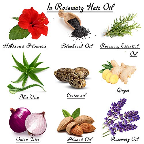 • Natural Ingredients- The rosemary hair oil is a natural and premium quality product. Our ingredients that come from natural sources rosemary essential oil Blackseed oil Onion Juice Ginger Hibiscus flowers No Artificial Fragrances or chemicwhich will give