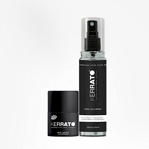 Kerrato Hair Fibre 4gm (JET BLACK) and Kerrato Fibre Hold Spray (100ml)|Kerrato Hair Fiber Combo Pack