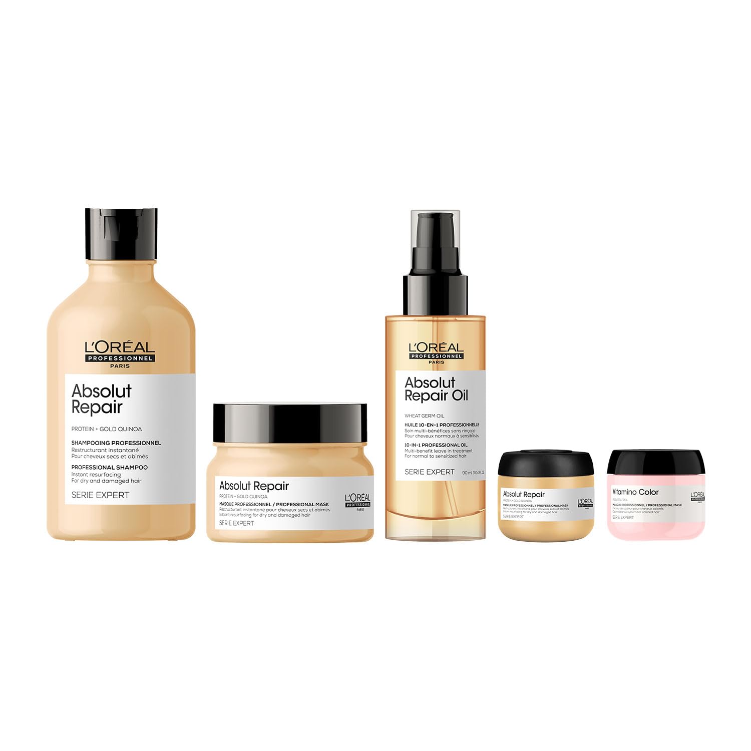 L'Oreal Professionnel Absolut Repair Shampoo Mask & Serum 3-Step Combo for Dry & Damaged Hair (300ml+250gms+125ml) with Absolut Repair & Vitamino Travel-Sizes 75ml