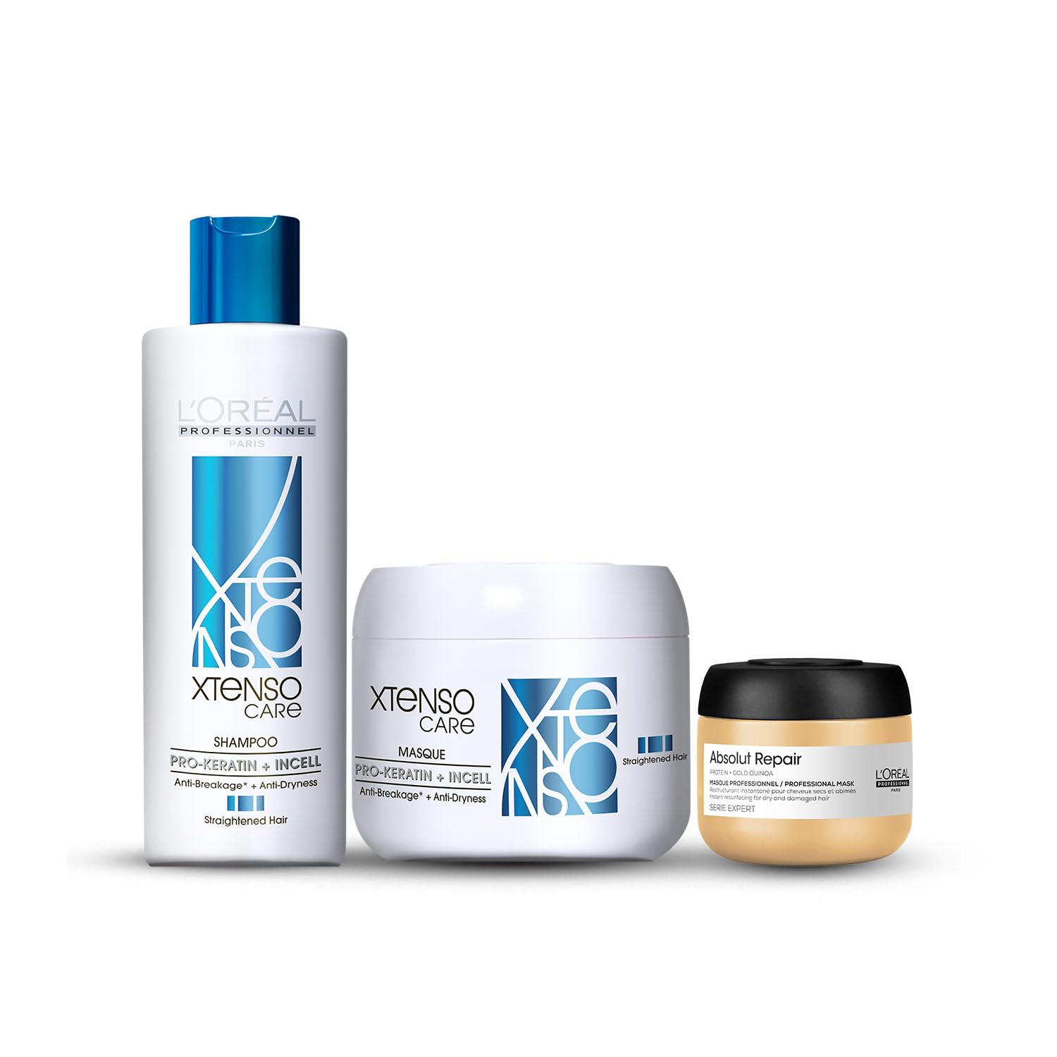 L'Oreal Professionnel Xtenso Care Shampoo For Straightened Hair 250 ML |Xtenso Care mask 196 gm | Shampoo & Mask for Starightened Hair with Absolut Repair Travel-Size Mask 75ml