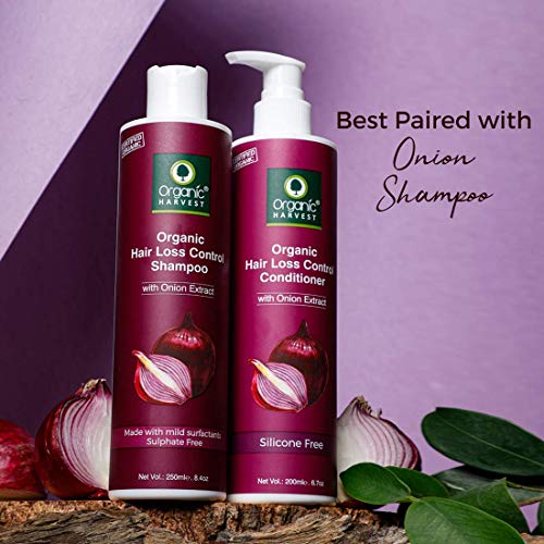 Organic Harvest's Organic Hair Control Conditioner is enriched with Onion extract making it a powerful product to hair and regain desired hair growth. The onion hair fall Conditioner by Organic Harvest helps improve hair growth by ing the level of the antioxidant enzyme catalase. It helps nourish your hair follicles with its rich content of sulphur. The rich sulphur content o in minimizing the possibilities of hair thinning and breakage. o onion extract stimulates your scalp and improves circulation resulting in its well-nourished follicles. With a firm belief in all the amazing things plants can do Organic Harvest aims to bring plants' power in all its products. Organic Harvest with its extensive hair care range have developed some high-performance products which combine the power of plants with Organic ingredients.