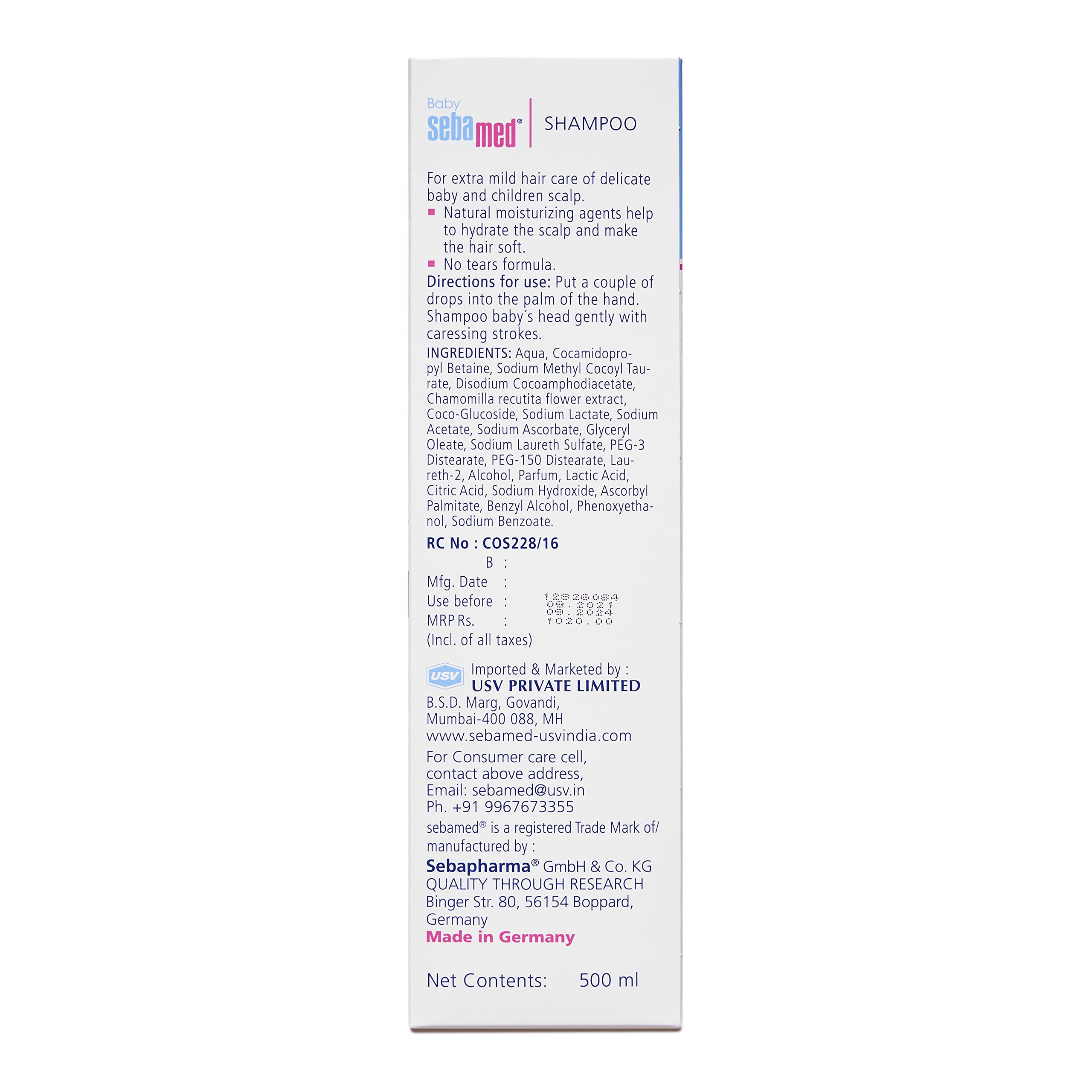 Sebamed 's shampoo has ph of 5. 5 And has sugar based mild cleanser. Other shampoos have ph greater 7 and chemiclike phthalates sls which s to allergic reactions. At ph 5. 5 Alone the scalp barrier remains intact. It has been clinically proven that only at ph 5. 5 Scalp is hydrated and strengthens scalp for optimal hair growth. Liand moisture is minimum and the growth of malassezia which s to dandruff is restricted. Sebamed 's shampoo is free from irritants and hence has 0 percent incidences of irritant reactions. Sebamed 's shampoo contains botanical ingredient hence the reported incidence of allergic reaction is 0. 000003 Percent. Only at ph5. 5 The 's delicate eyes are not irritated and the tear free formula is free from . Sebamed 's shampoo is ideal for cradle cap seborrheic dermatitis and dandruff. Made in germany100 percent and alkali free especially mild cleansers for gentle cleansing without irritating the scalp or hair herbal extract of chamomile alleviates irritation and soothes the skin special no tears formula does not sting in the eyes leaves hair fragrant and silky pleasant botanical fragrance ideal from six month onwards clinically proven suitability for cleansing of hair and scalp in and with sensitive scalp was proven in the dermatological study. Users documented an excellent acceptance of the shampoo and 93 percent were willing to continue using it.