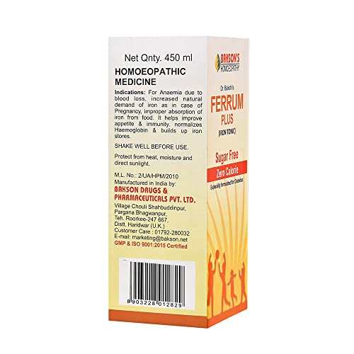 Dr. Bakshi's BAKSON'S Ferrum Plus (Sugar Free) Syrup (450ml)