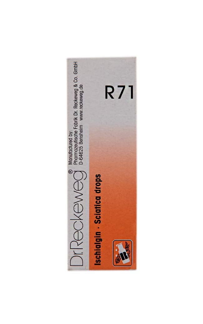 Dr. Reckeweg R71 Sciatica Drop is used to manage sciatica-related ailments. It contains colocynthis, which relieves muscle contraction and neuralgic pains and cramps.
