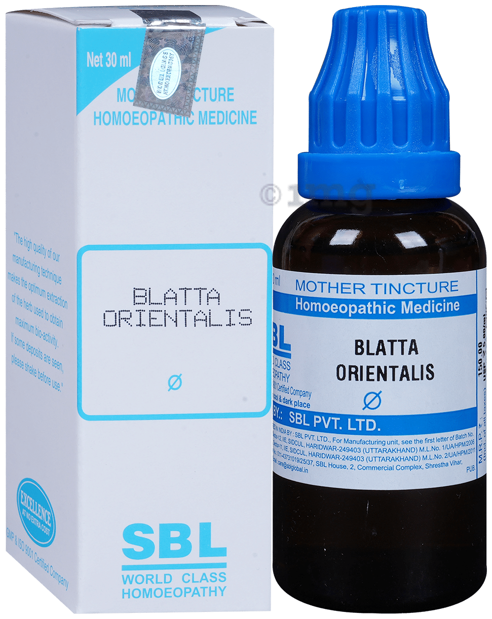 SBL Blatta Orientalis Mother Tincture is a homeopathy medicine. This drug is extracted from cockroach. It was invented accidentally when a patient suffering from asthma consumed a tea in which cockroach is infused. It has various health benefits and is effective in treatment of respiratory infections like asthma and chronic bronchitis and bronchiolitis.