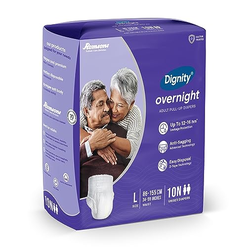 • Dignity Overnight Pull-Up Adult Diapers are underwear style diapers designed for involuntary urination or defecation in both men & women. Overnight Pull-Ups provide Protection for up to 12-16 hours.