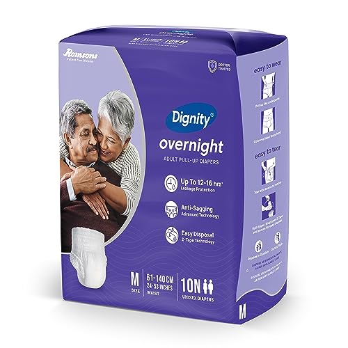Dignity Overnight Pull Up Adult Diapers Pant Style - 10 Count (Medium) with Soft Elastic and Extra Absorbent Core, Waist Size 24" - 53", 10 Pcs/Pack (Pack of 1)