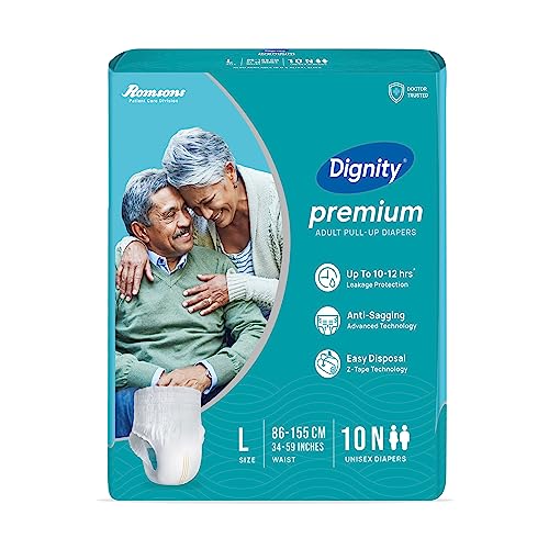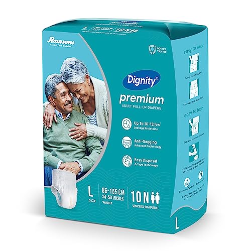 • Dignity Premium Pull-Up Adult Diapers are underwear style diapers designed for involuntary urination or defecation in both men & women. Premium Pull-Ups provide Protection for up to 10-12 hours.