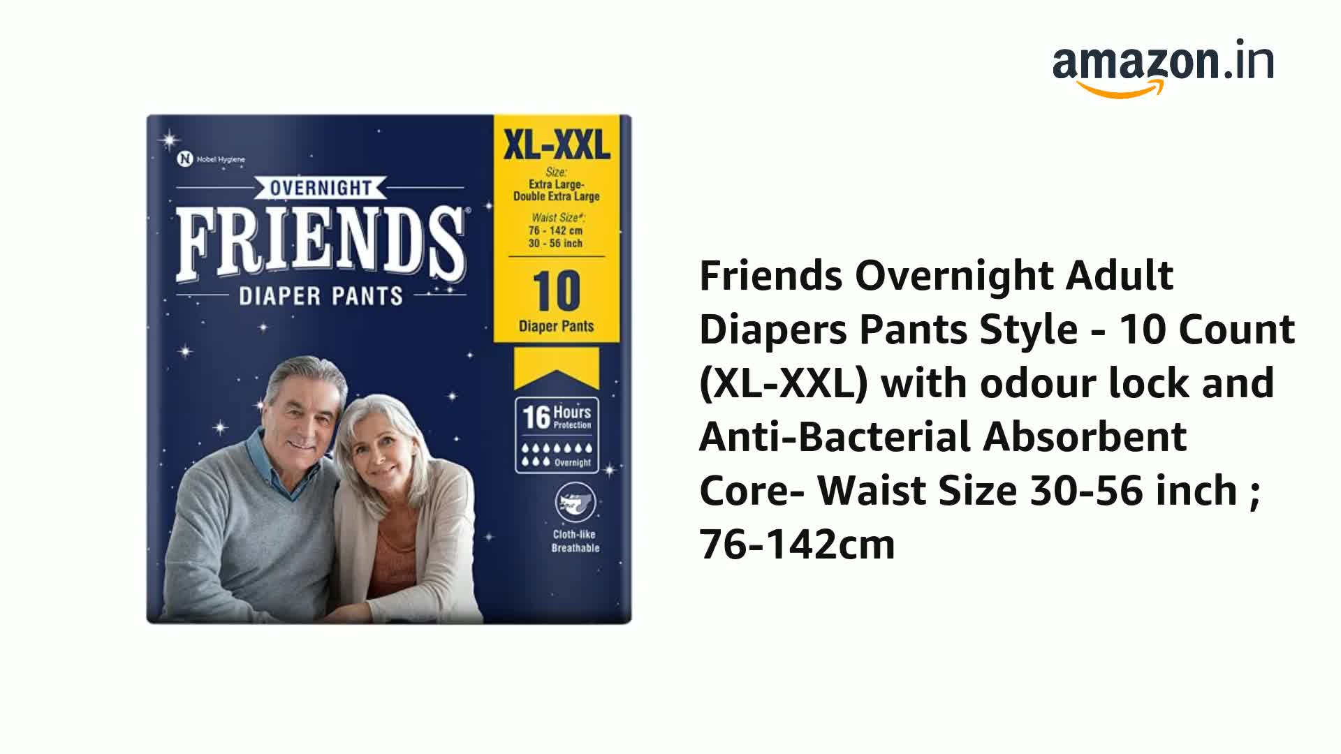 • Friends Adult Diapers XL size to XXL size with up to 16 hours of protection are also available in sizes M-L and L-XL.