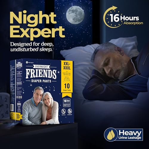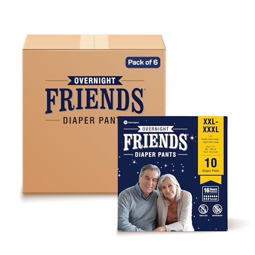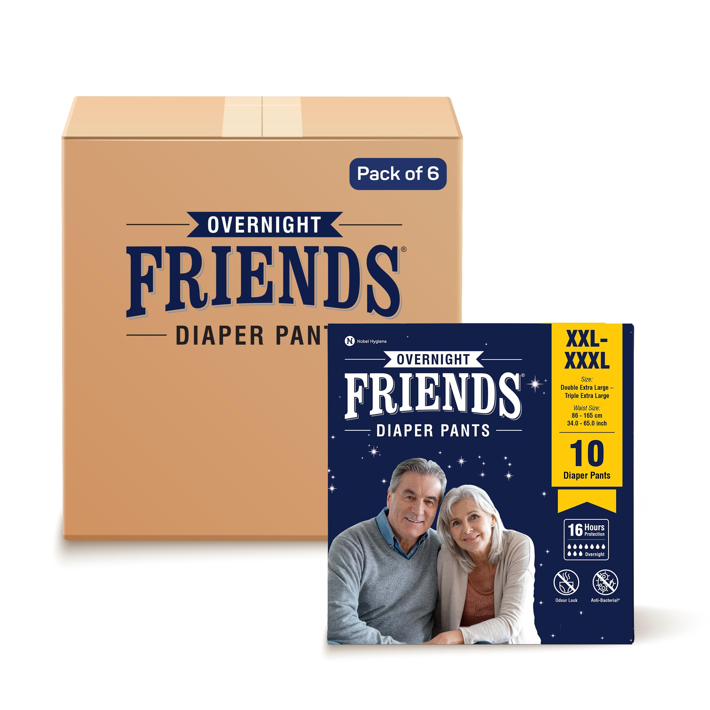 Friends Overnight Adult Diapers Pants Style - 60 Count (Double Extra Large) with odour lock, Unisex, Leakproof, Elastic Waist and Anti-Bacterial Absorbent Core - Waist Size 34-65 Inch; 86-165 cm