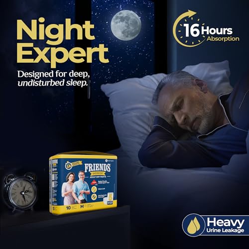Friends Overnight Adult Diapers Pants Style - 80 Count (Medium) with odour lock, Unisex, Leakproof, Elastic Waist and Anti-Bacterial Absorbent Core - Waist Size 25-48 inch; 63.5-122 cm