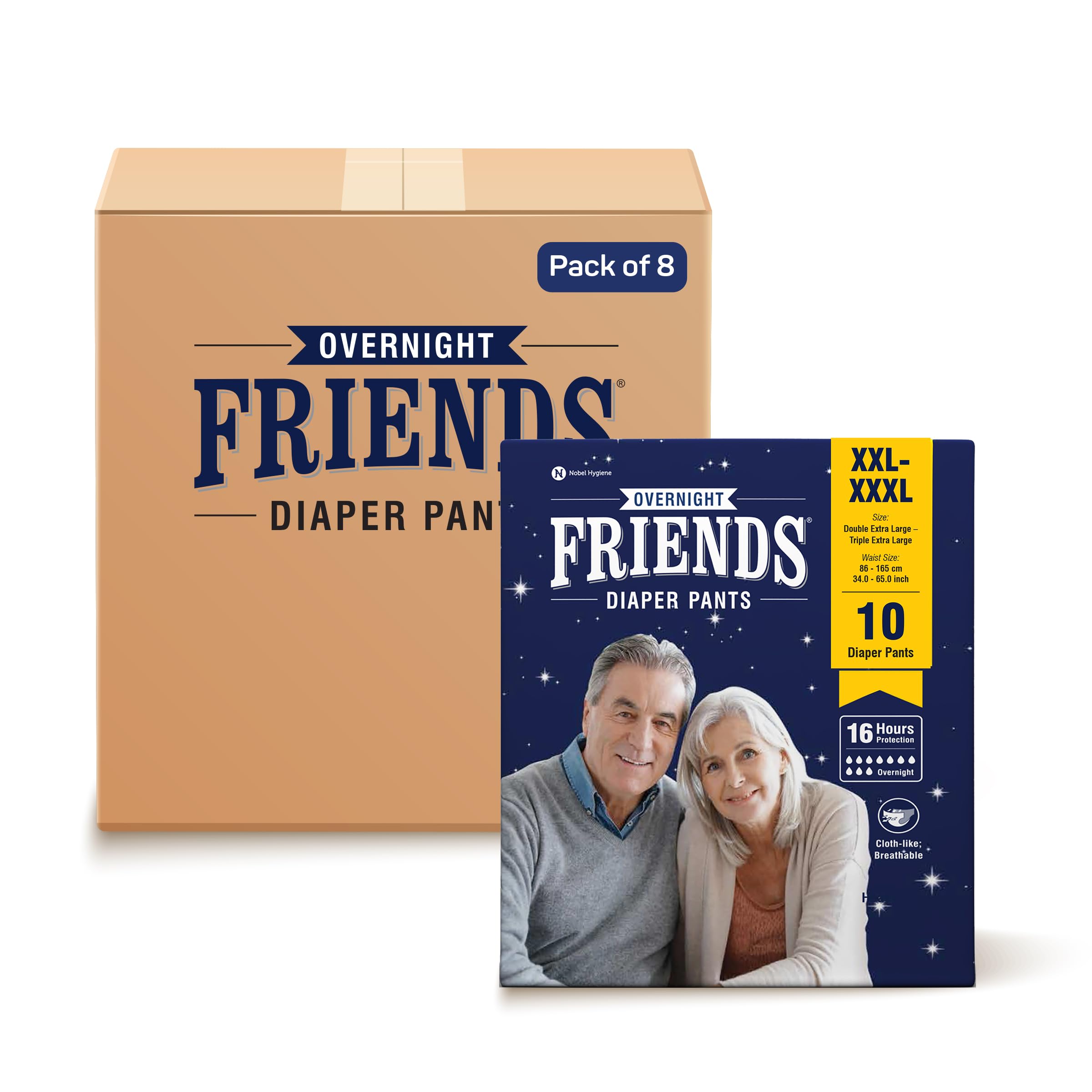 Friends Overnight Adult Diapers Pants Style - 80 Count (Double Extra Large) with odour lock, Unisex, Leakproof, Elastic Waist and Anti-Bacterial Absorbent Core - Waist Size 34-65 Inch; 86-165 cm