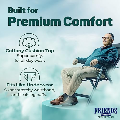 Friends Premium Adult Diapers Pants Style - 20 Count (Large) with odour lock, Unisex, Leakproof, Elastic Waist and Anti-Bacterial Absorbent Core - Waist Size 30-56 inch; 76-142 cm