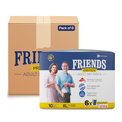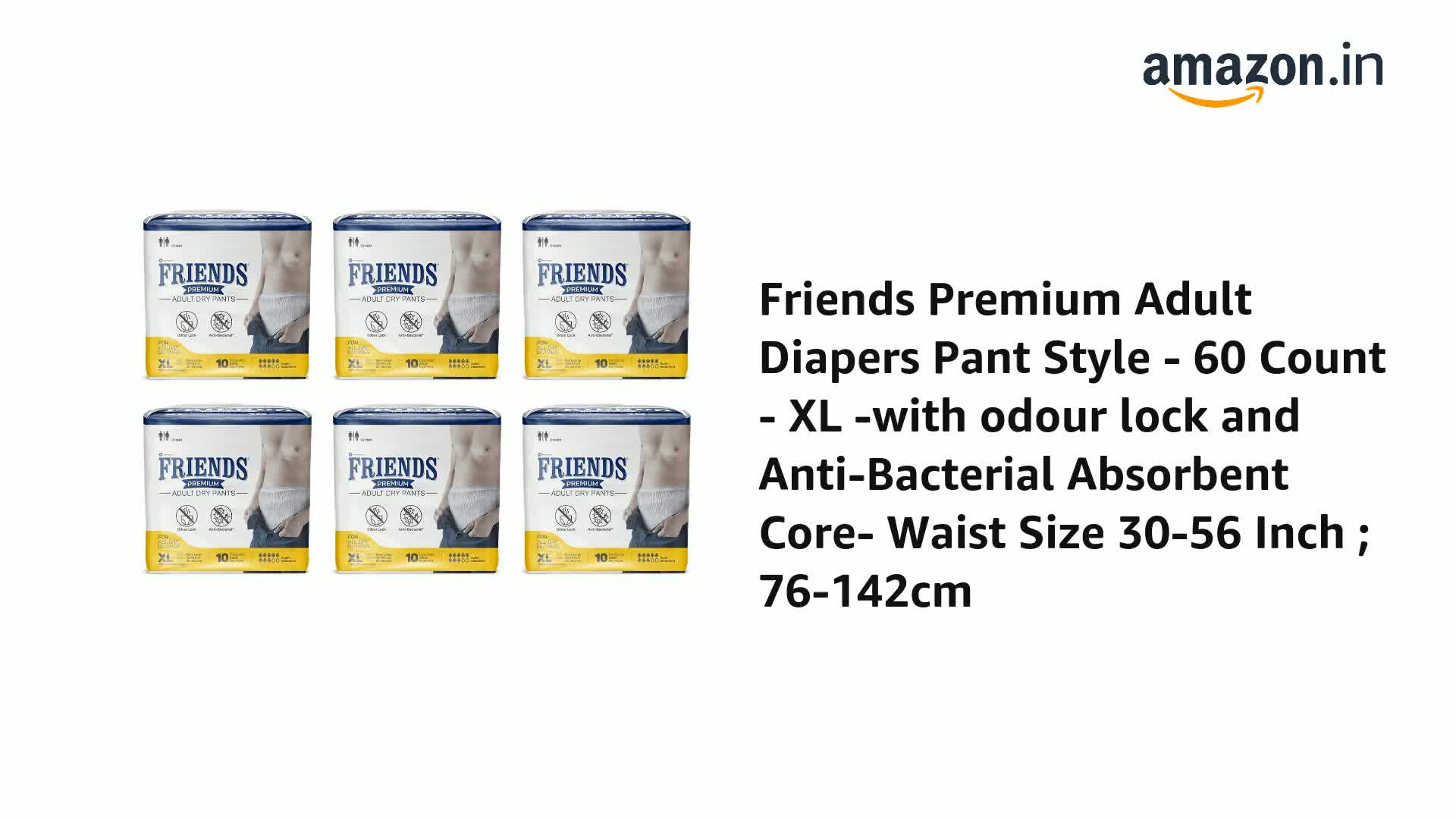 • Friends Adult Diapers extra-large size pant style with 12 hours of protection are also available in sizes M and L.