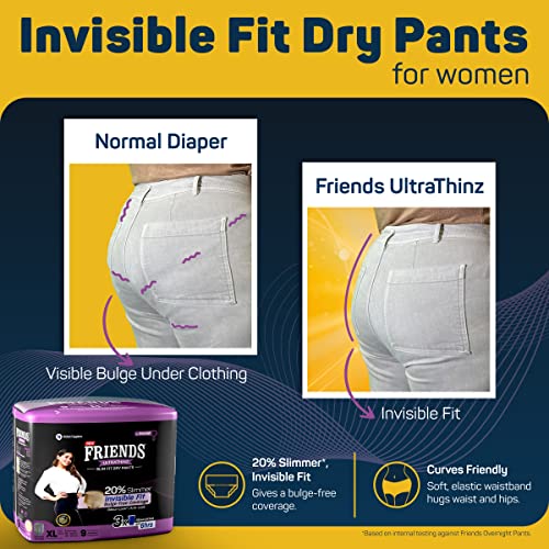 Friends UltraThins Slim Fit Adult Diapers (Dry Pants) for Women - Extra Large – 18 Count - with thin design, peach colour, and anti-rash - Waist Size 30-56 Inch ;76-142 cm