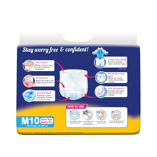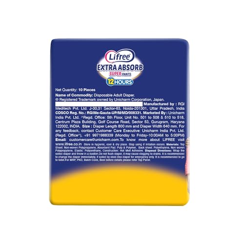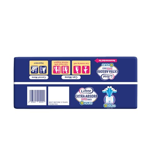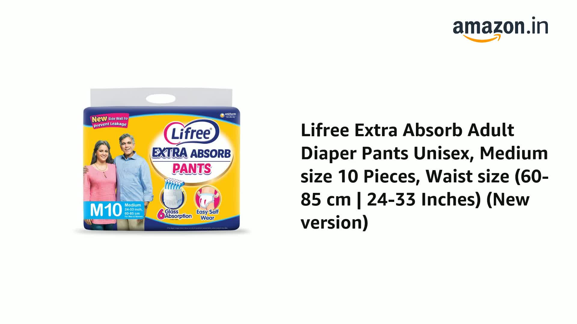 Lifree Extra Absorb Super Pants|Unisex Adult Diaper|Pant Style|Use Upto 12 Hours|6-Glass Absorption|Quick Dry Sheet|Prevents Leakage|Prevents Heaviness|Size M( 30-41 Inches/75-105 Cms)Count 10