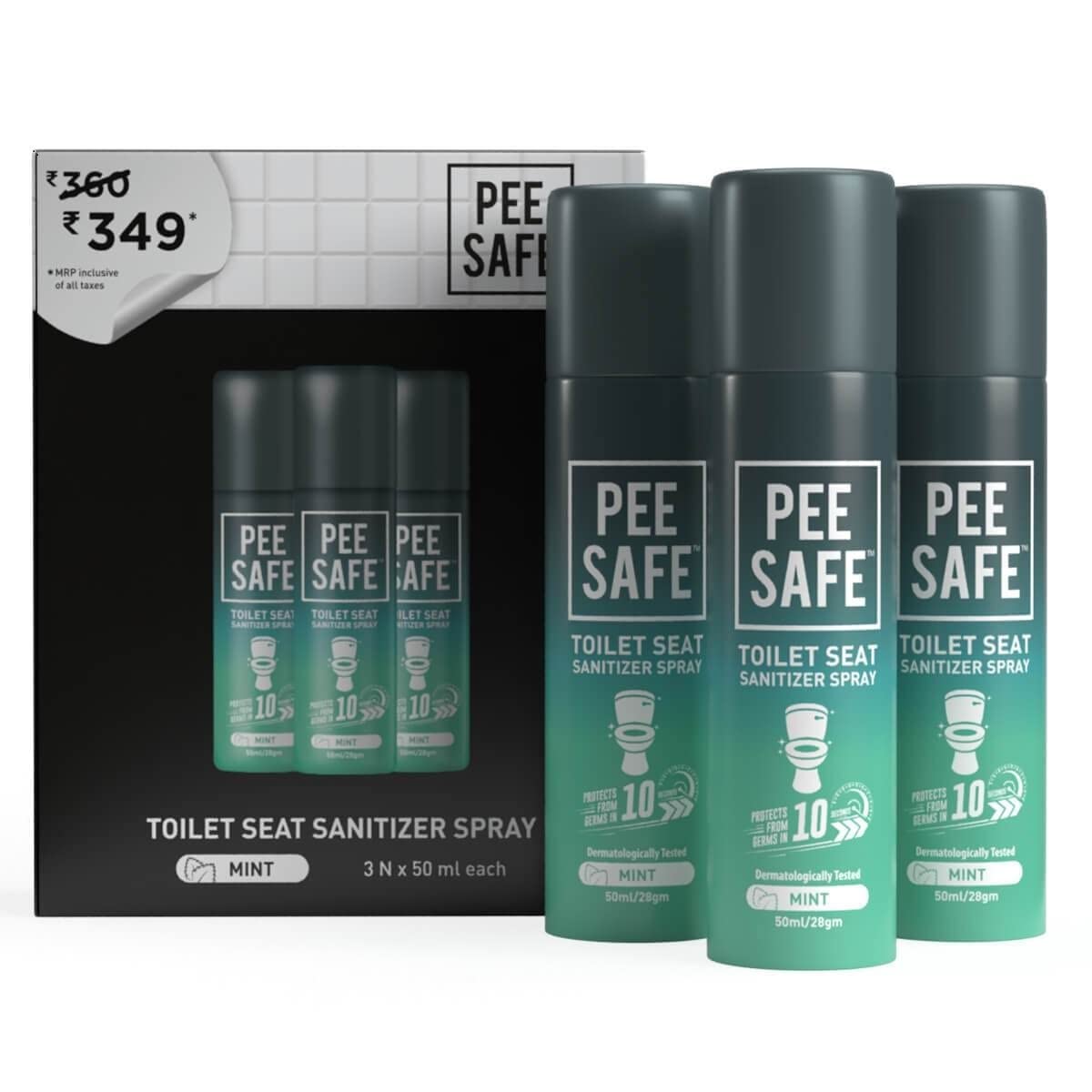 Pee Safe Toilet Seat Sanitizer Spray (50ml - Pack Of 3) - Mint | Reduces The Risk Of UTI & Other Infections | Kills 99.9% Germs & Travel Friendly | Anti Odour DeodorizerPee Safe is Convenient and easy to use disinfectant for toilets and can be also used during traveling. Always keep Pee Safe handy. Acts as a disinfectant for Toilet Seats Door handles Flush Knobs etc keeping you safe from Bacterial and Viral infections. 99.99% sanitization from toilet borne diseases in 5 seconds!Peesafe Natural Intimate Wipes | 100% Alcohol-Free | pH Balanced | Skin Friendly For Daily Hygiene | Tea Tree Essential Oil | Paraben-Free | Sulfate-Free | 40 WipesSize: 40 wipespeesafe natural intimate wipes are made from viscose making them extremely soft and comfortable to use. It cleanses and freshens your intimate area without any hassle. Proper care is taken by the skin friendly ph. It is made from the natural extracts like tea tree essential oil. Natural intimate wipe is alcohol paraben and sls free. Its usage provides with freshness prevents rashes and allergies.